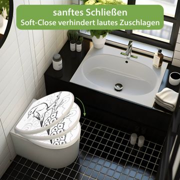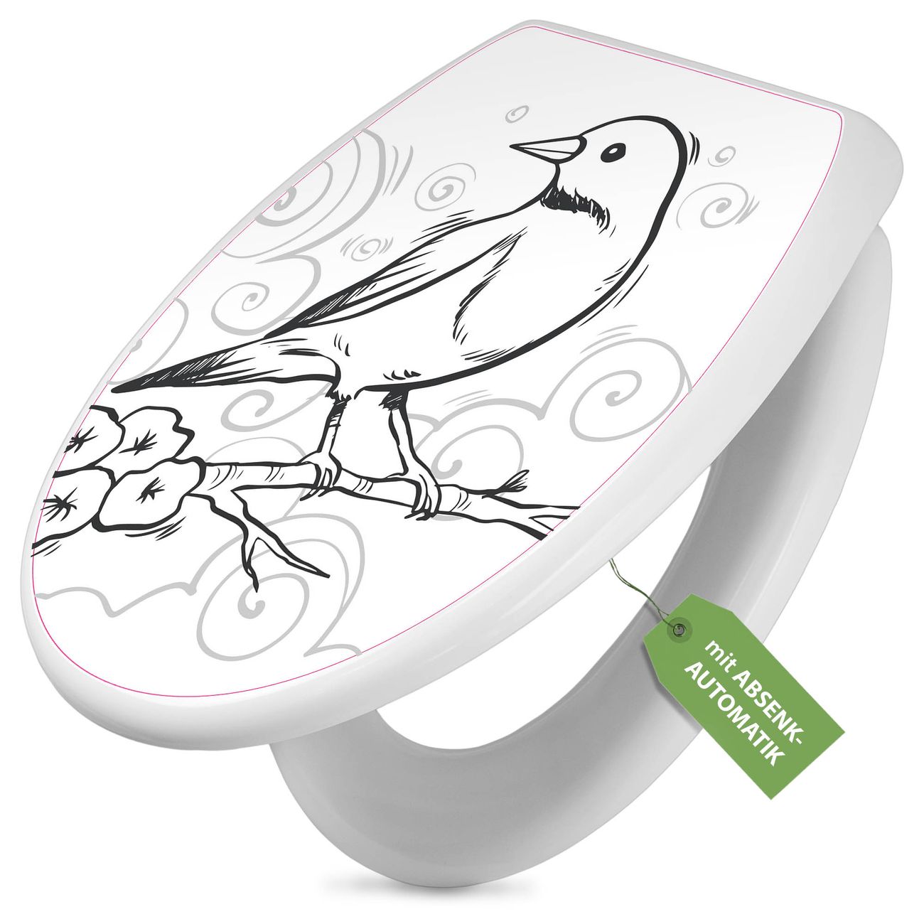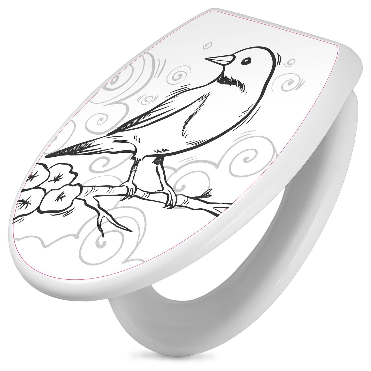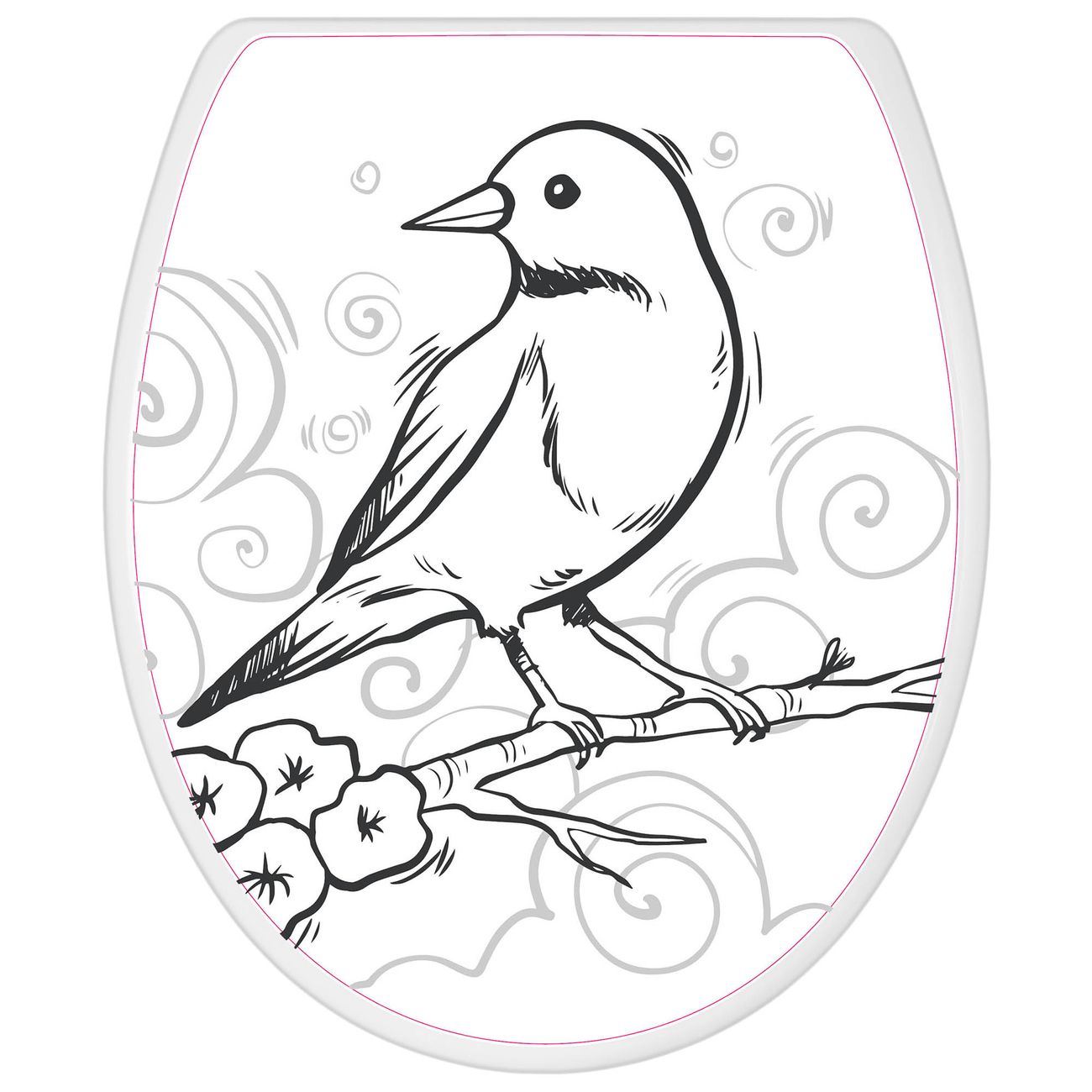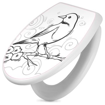 Toilettendeckel weiß mit Absenkautomatik Motiv Vogel auf Blütenzweig