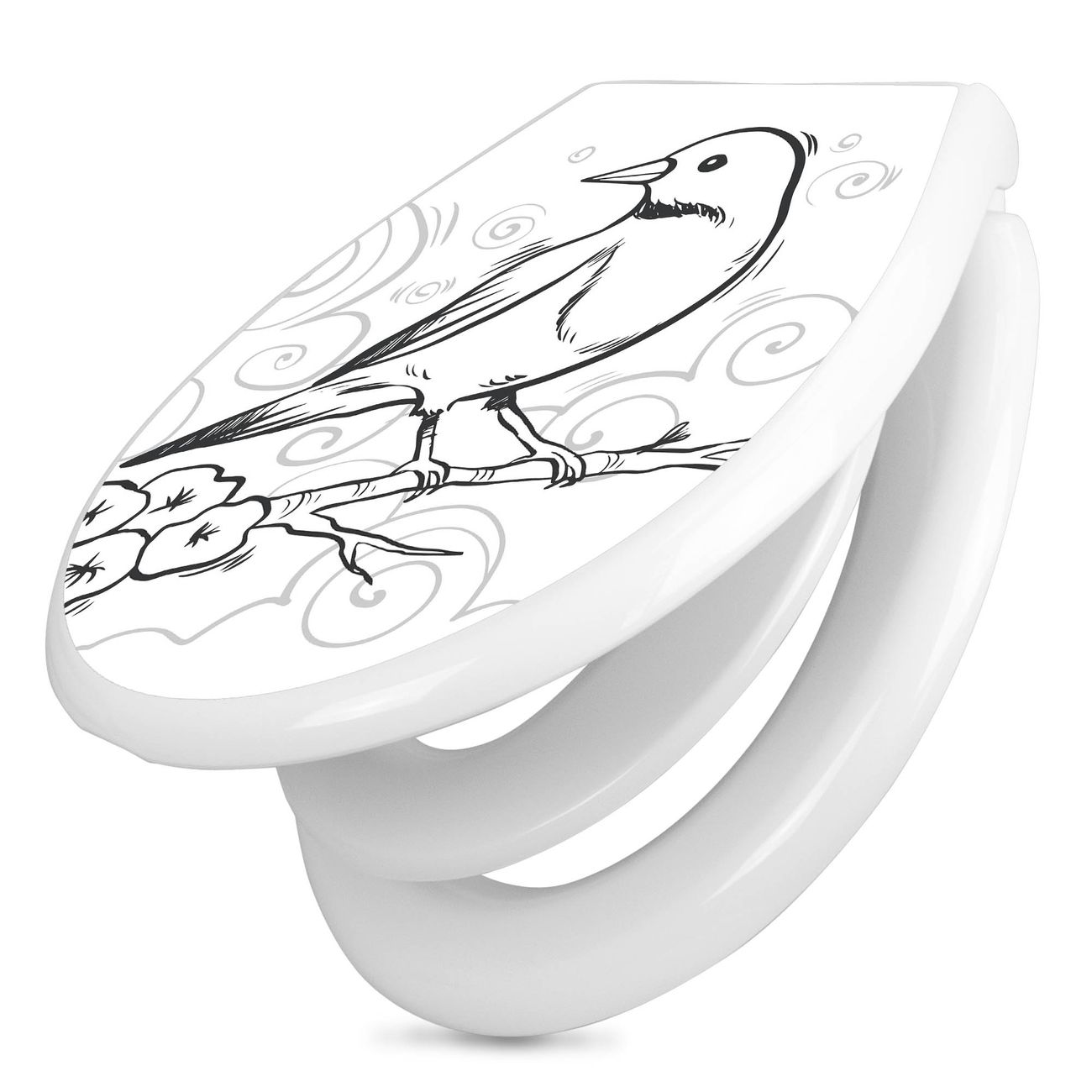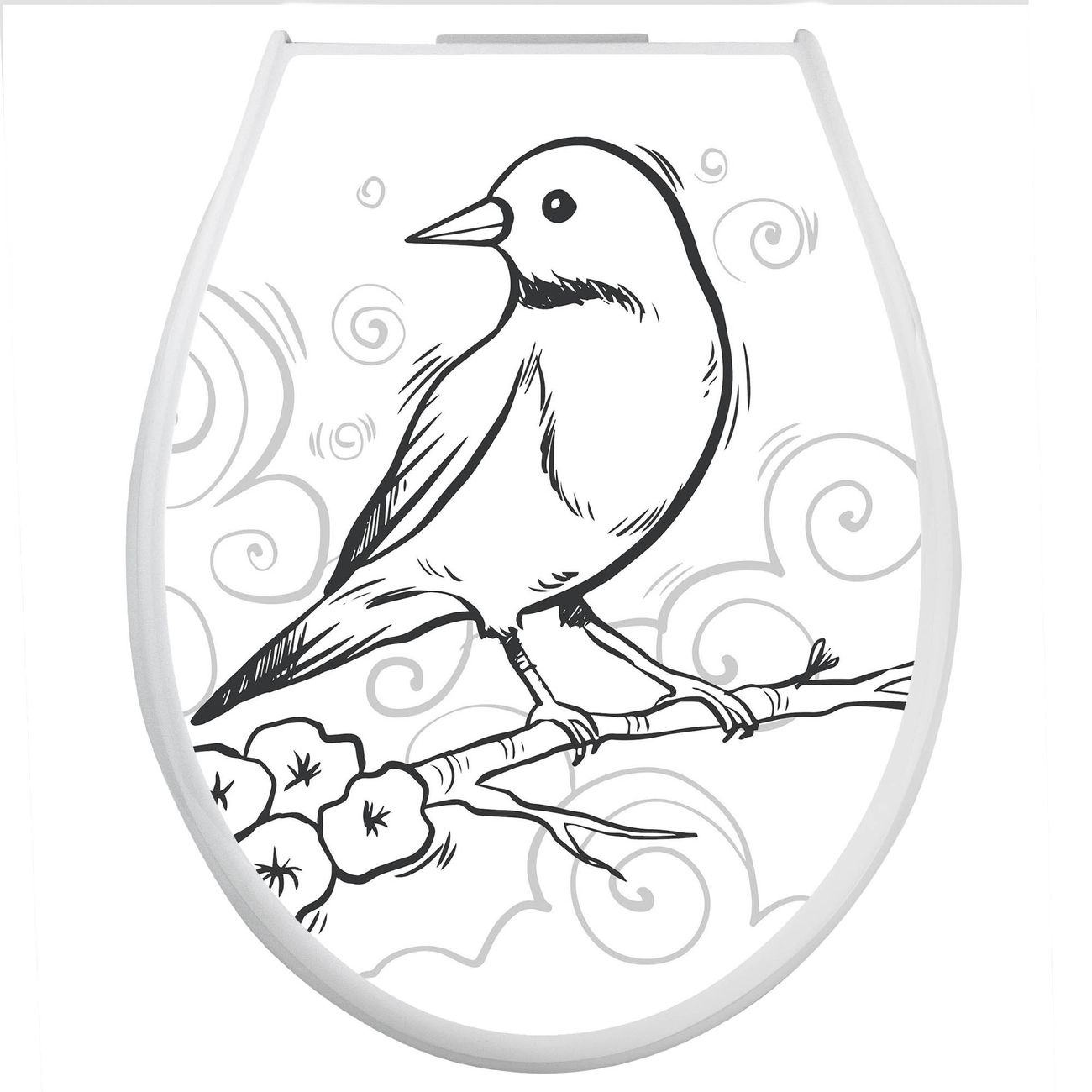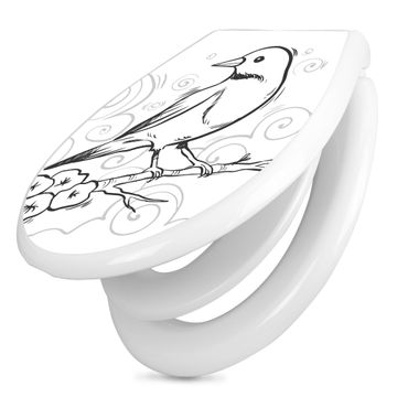 Toilettendeckel weiß mit Absenkautomatik Motiv Vogel auf Blütenzweig