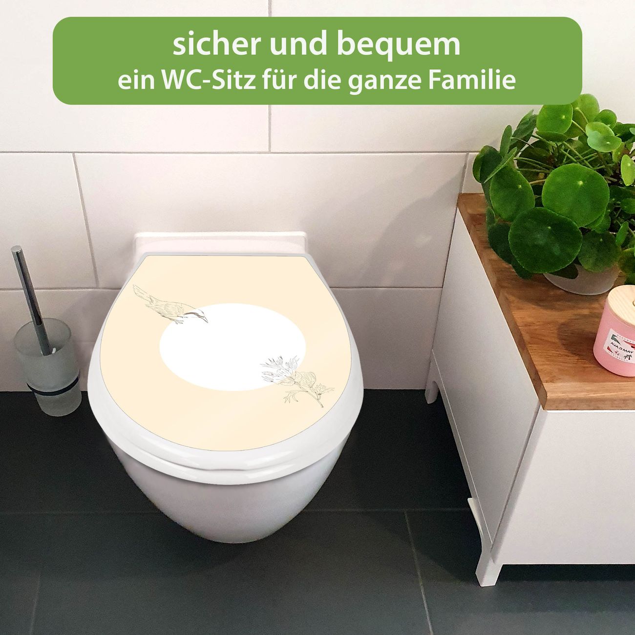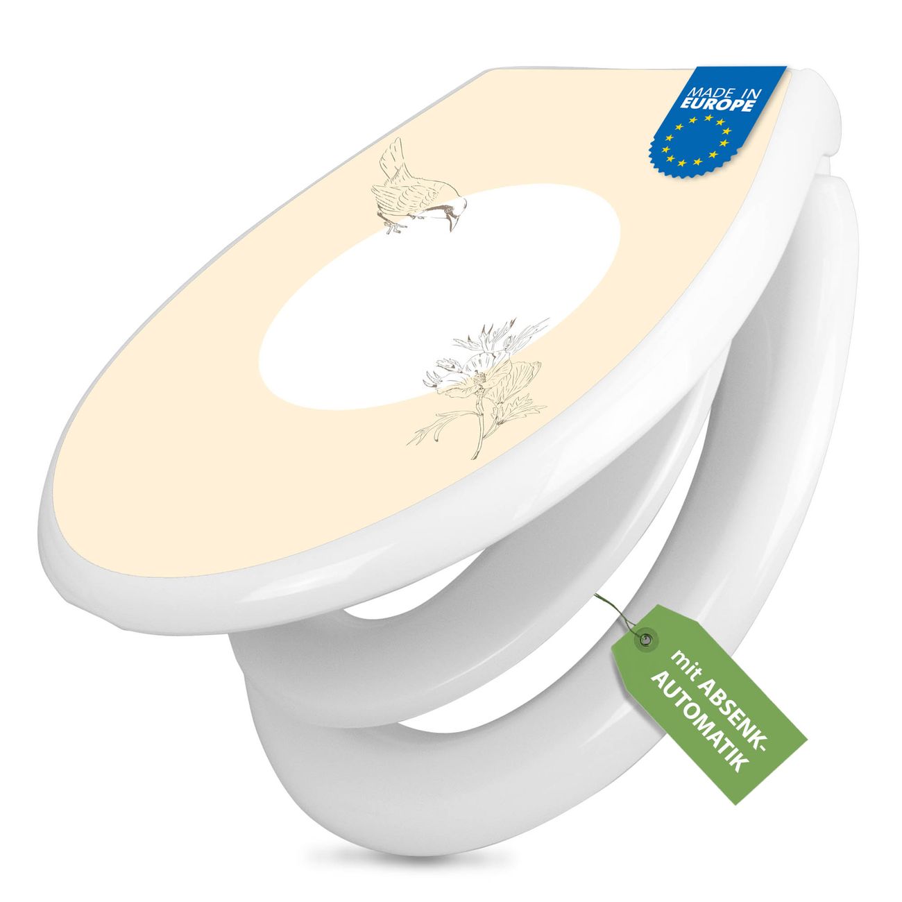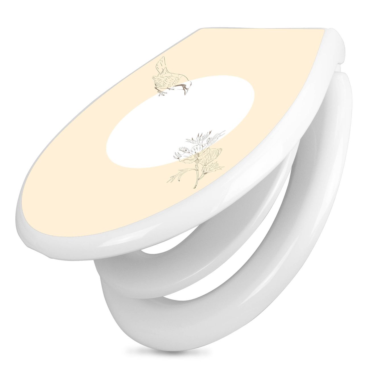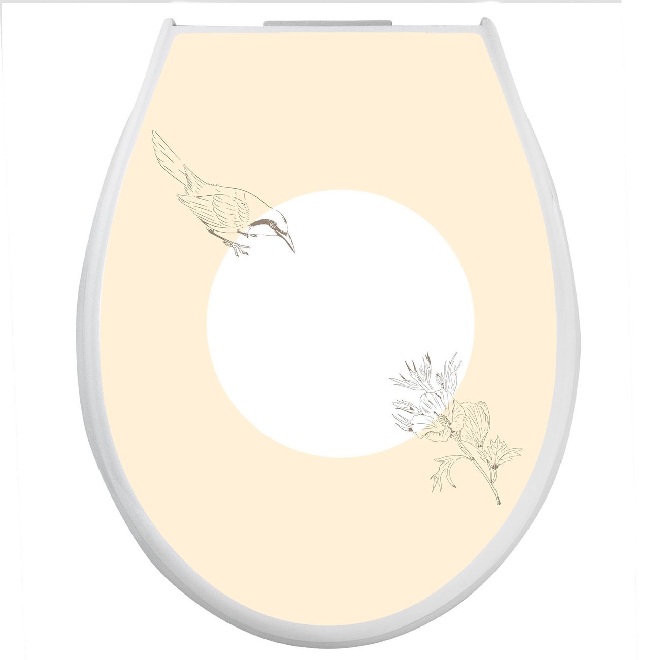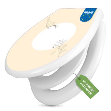 Toilettendeckel weiß mit Absenkautomatik Motiv Vogel und Blüte