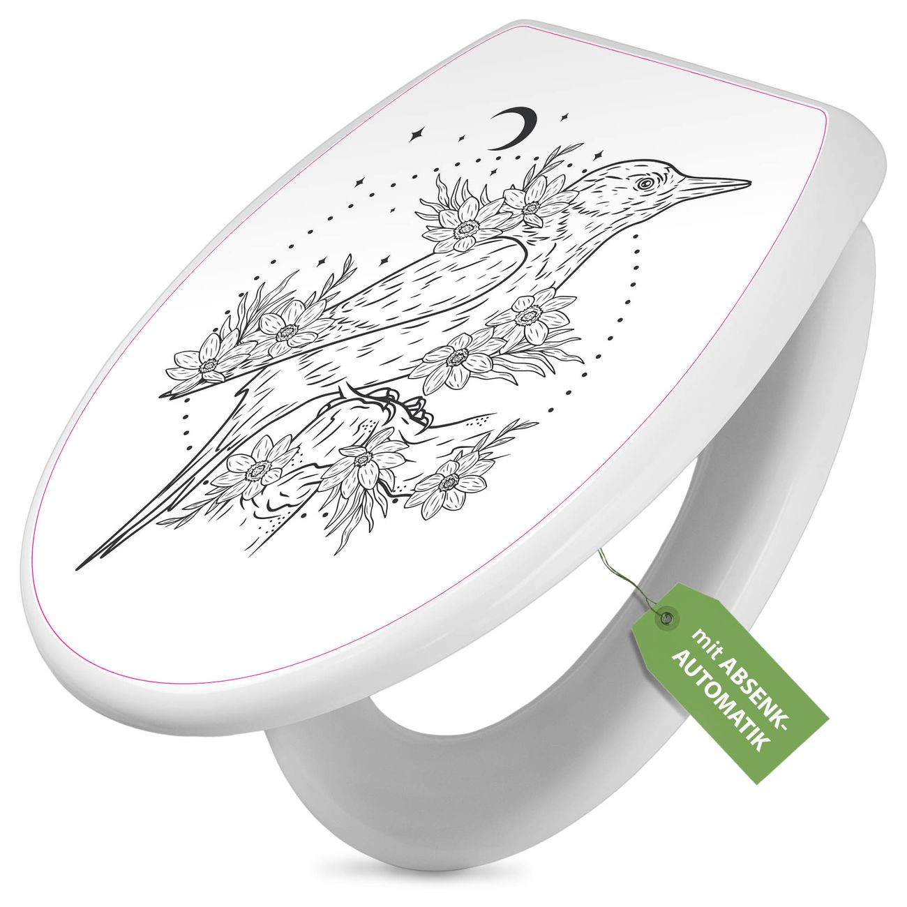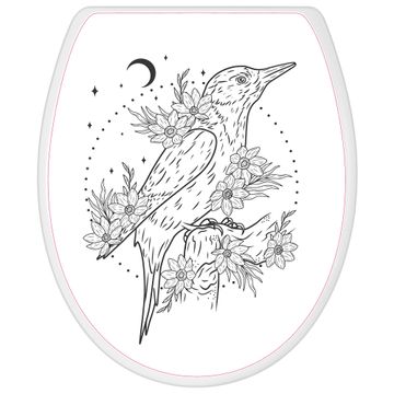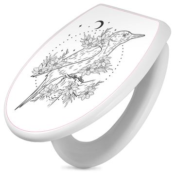 Toilettendeckel weiß mit Absenkautomatik Motiv Vogel und Blumen im Mondlicht