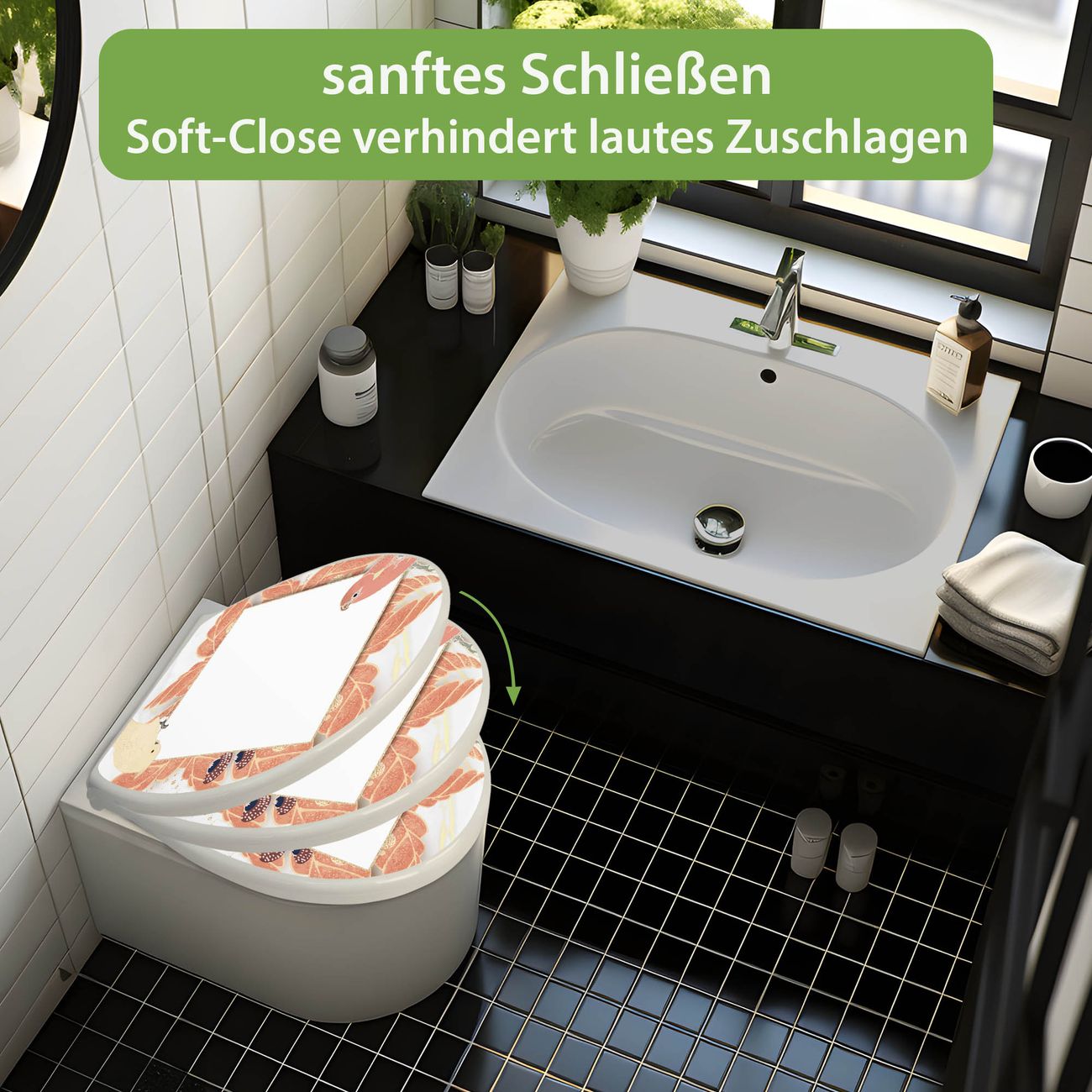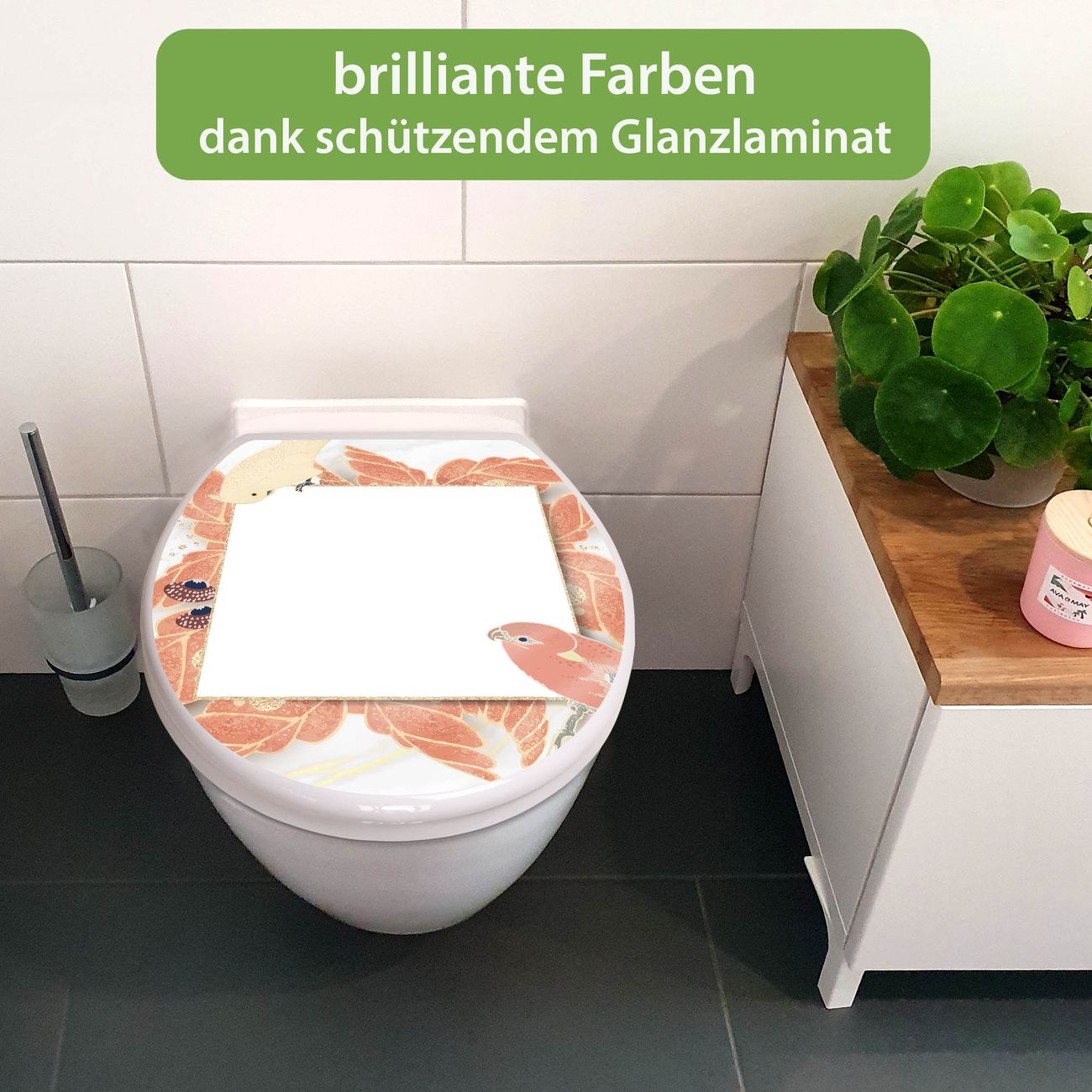 Toilettendeckel weiß mit Absenkautomatik Motiv Vogelrahmen