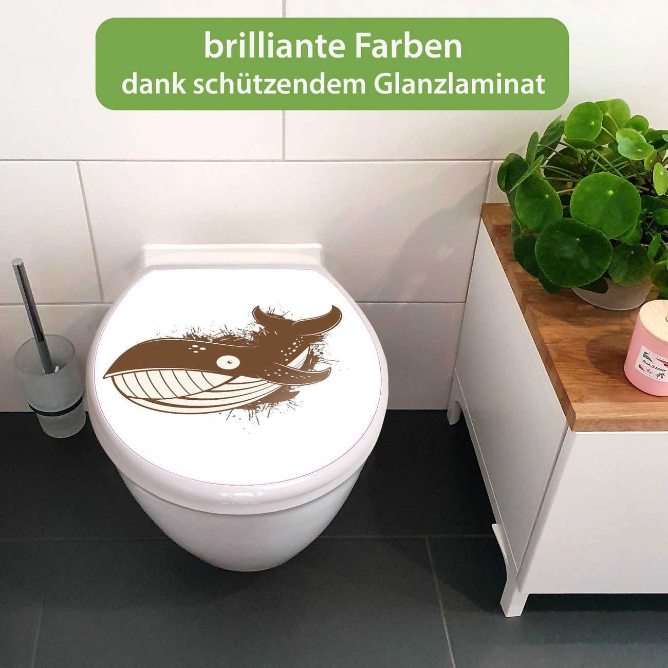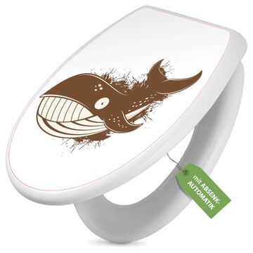 Toilettendeckel weiß mit Absenkautomatik Motiv Wal Comic 2