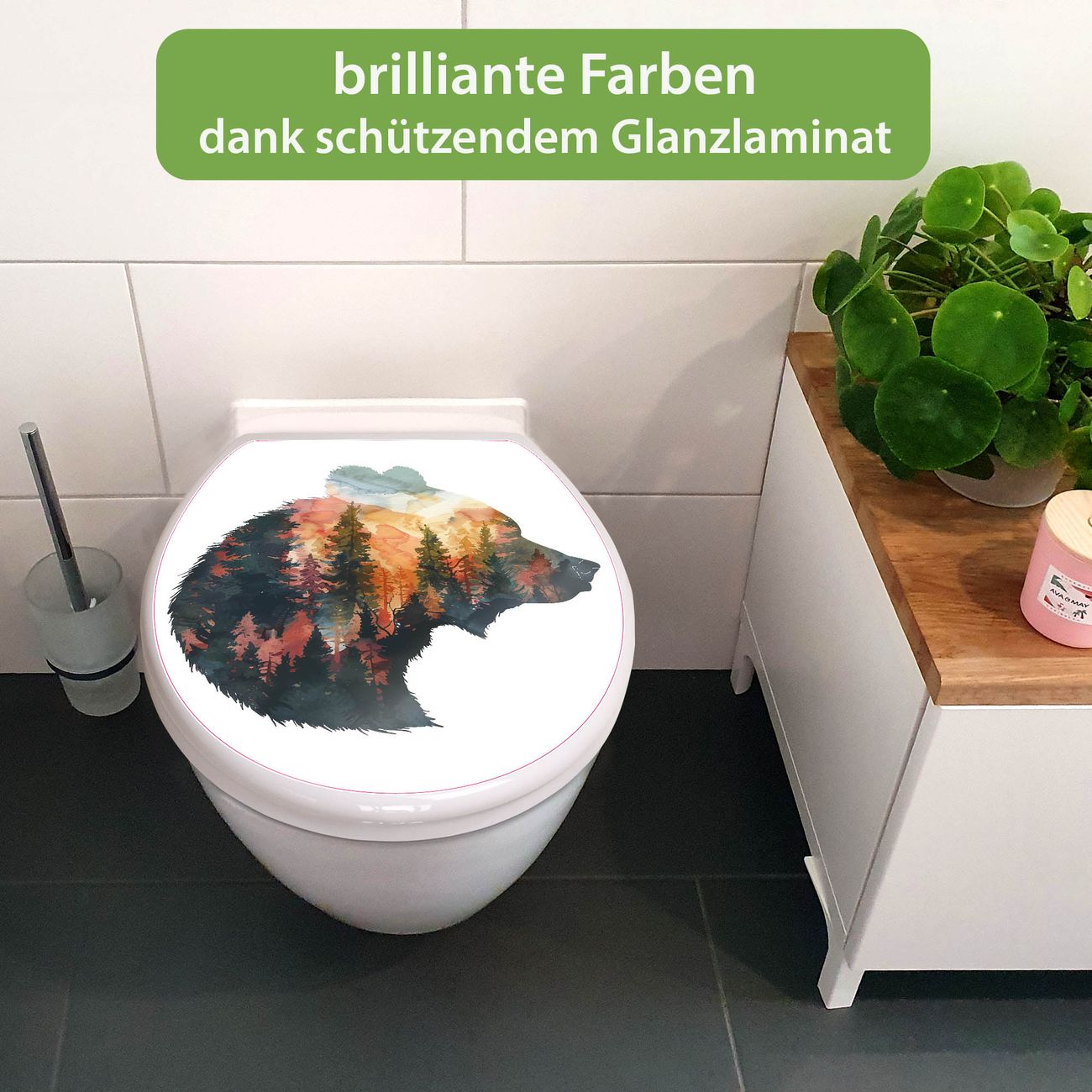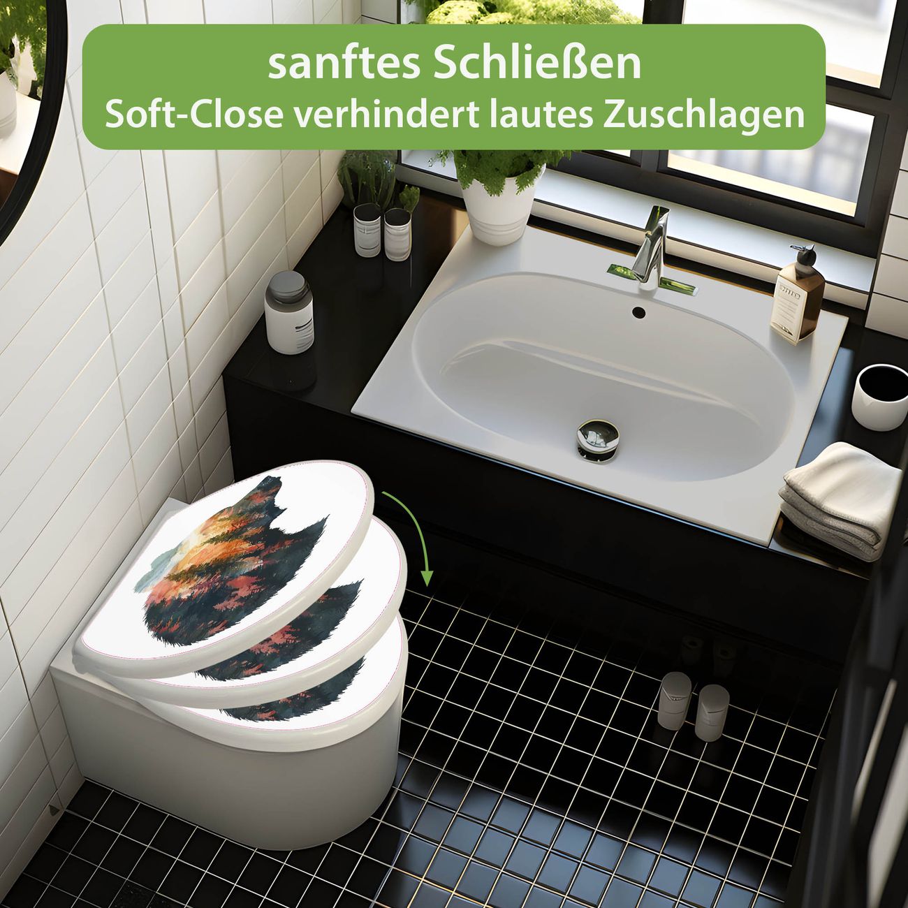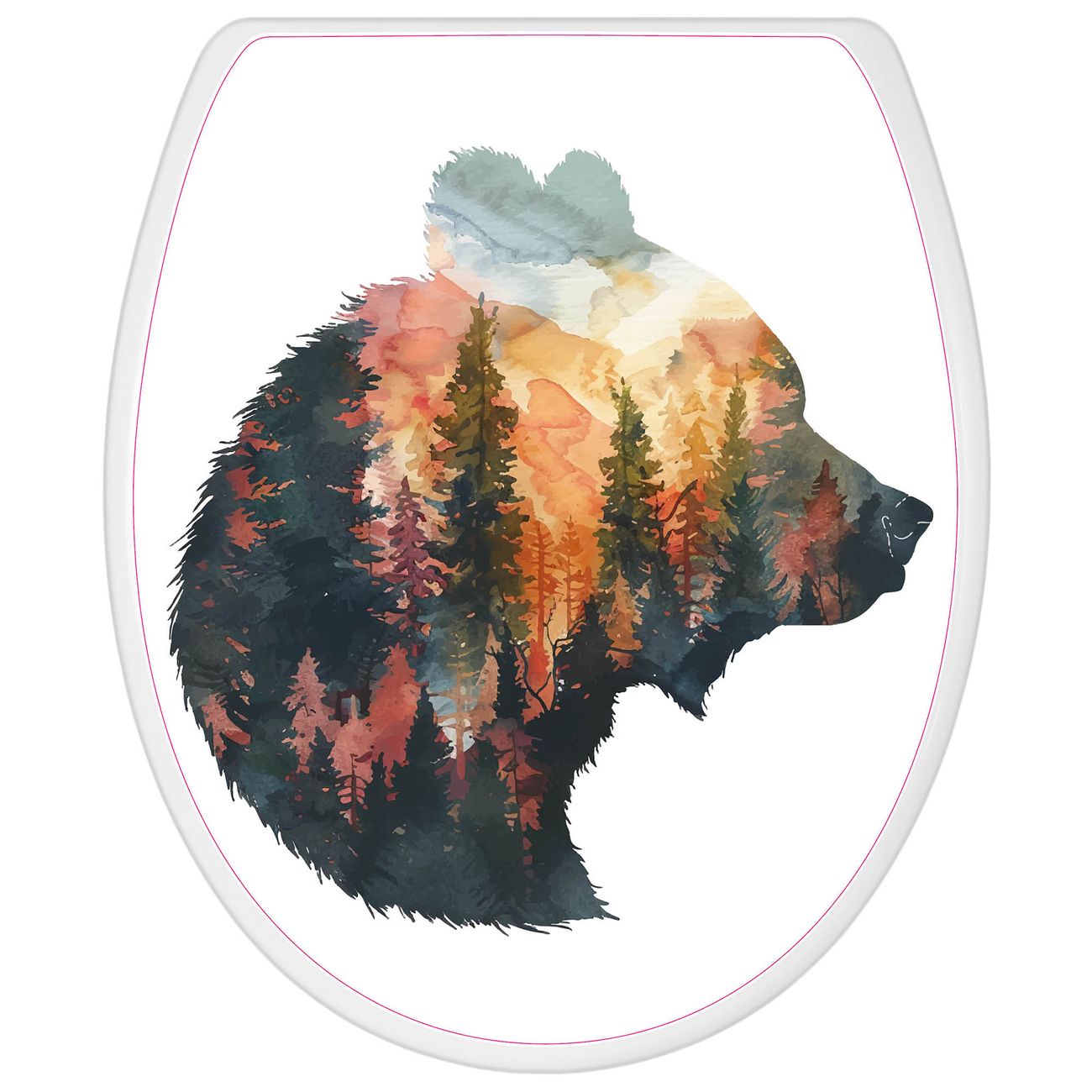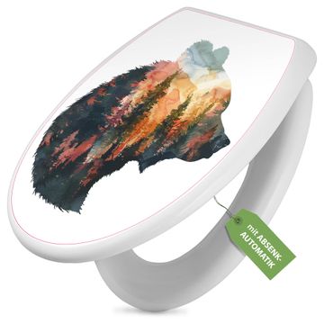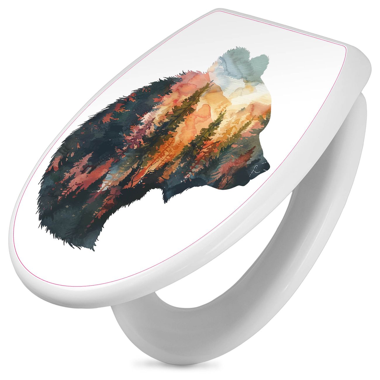 Toilettendeckel weiß mit Absenkautomatik Motiv Wald und Bär Silhouette