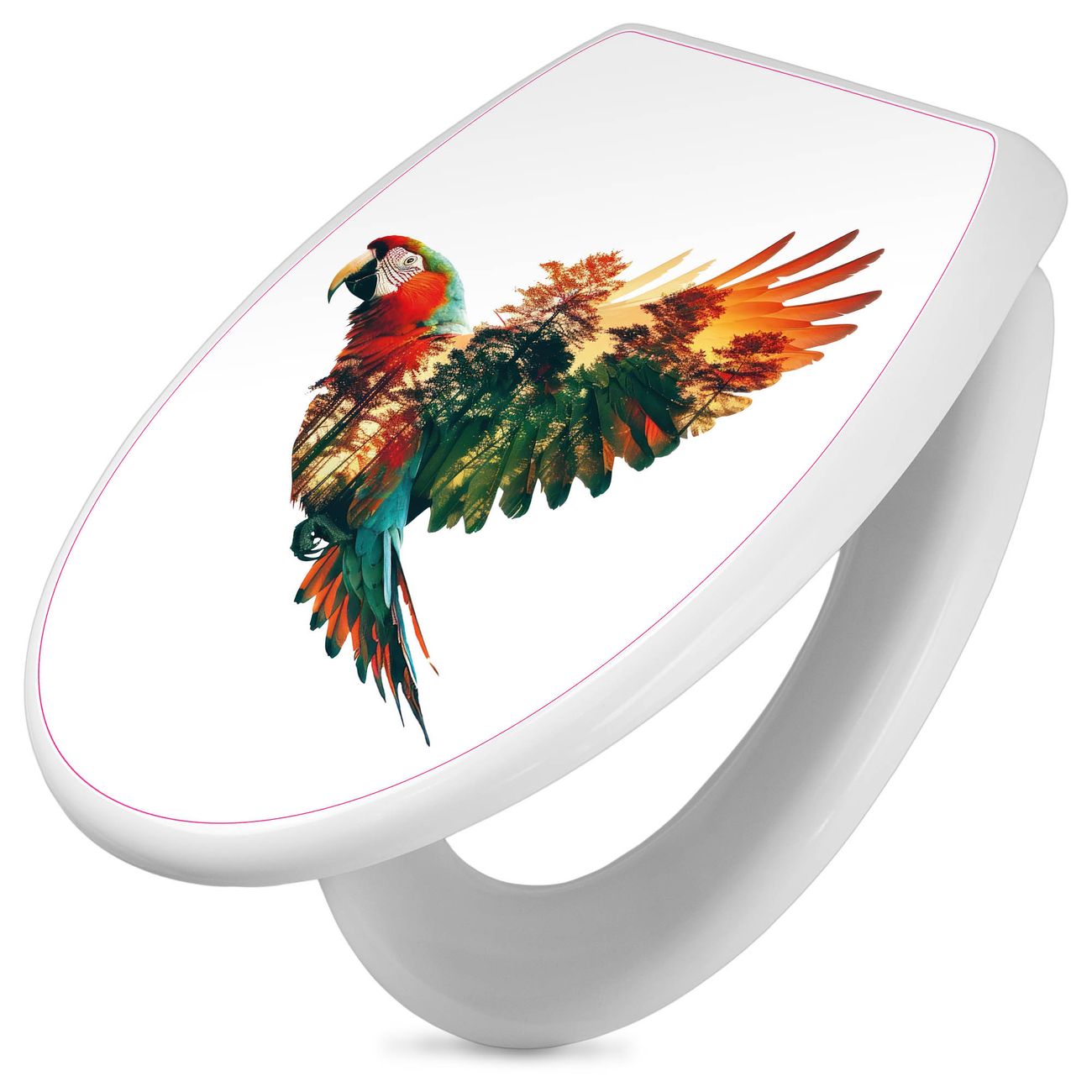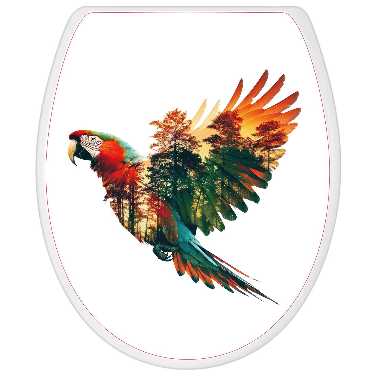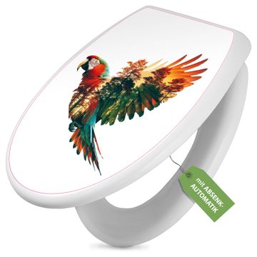 Toilettendeckel weiß mit Absenkautomatik Motiv Wald und Vogel Silhouette