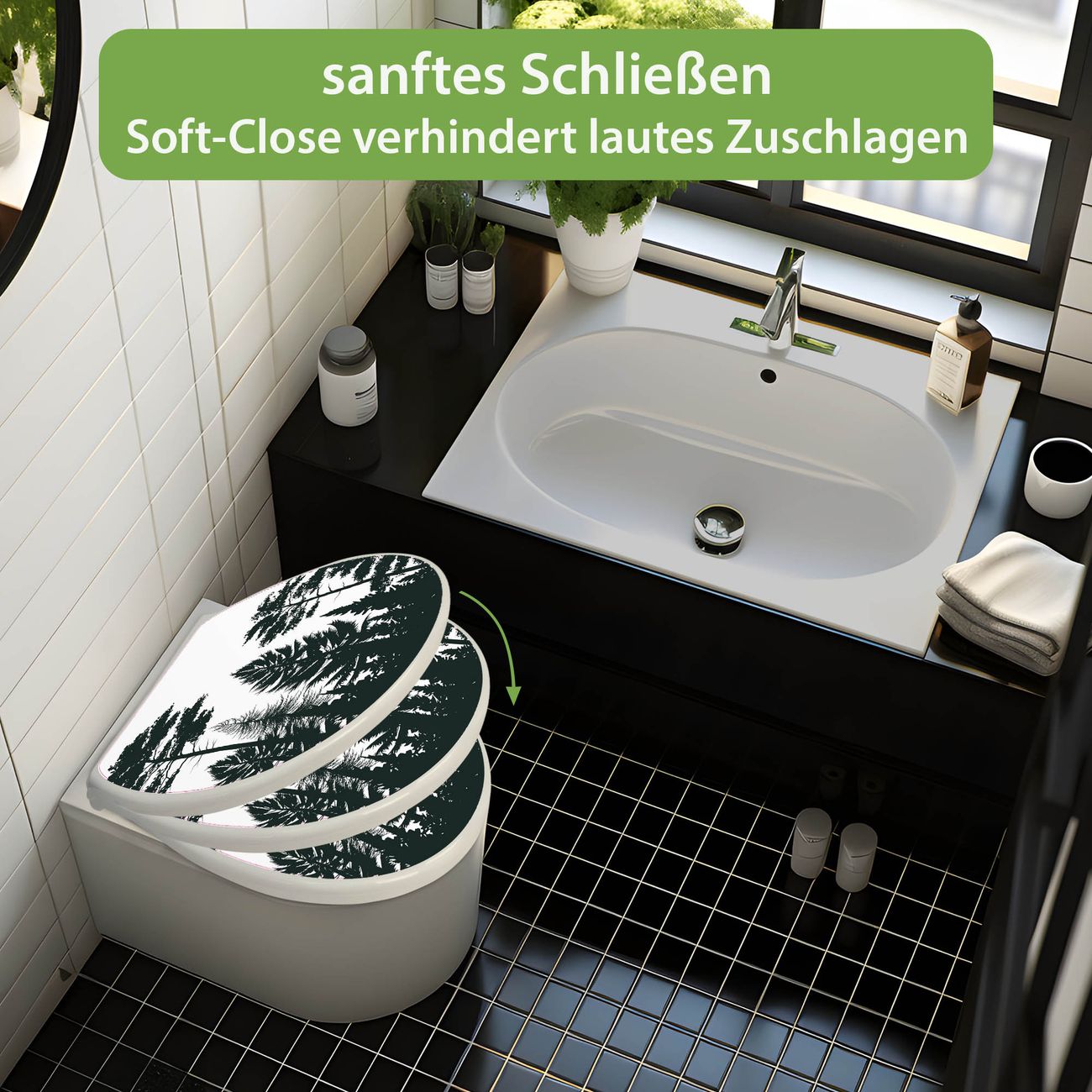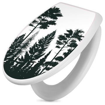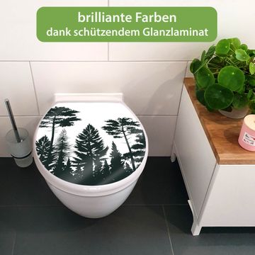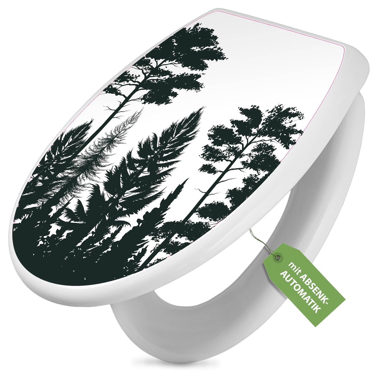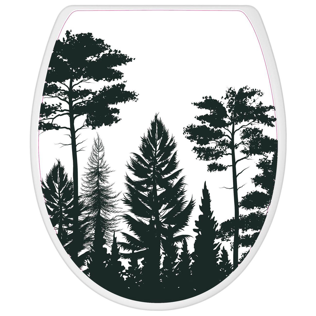 Toilettendeckel weiß mit Absenkautomatik Motiv Waldsilhouette