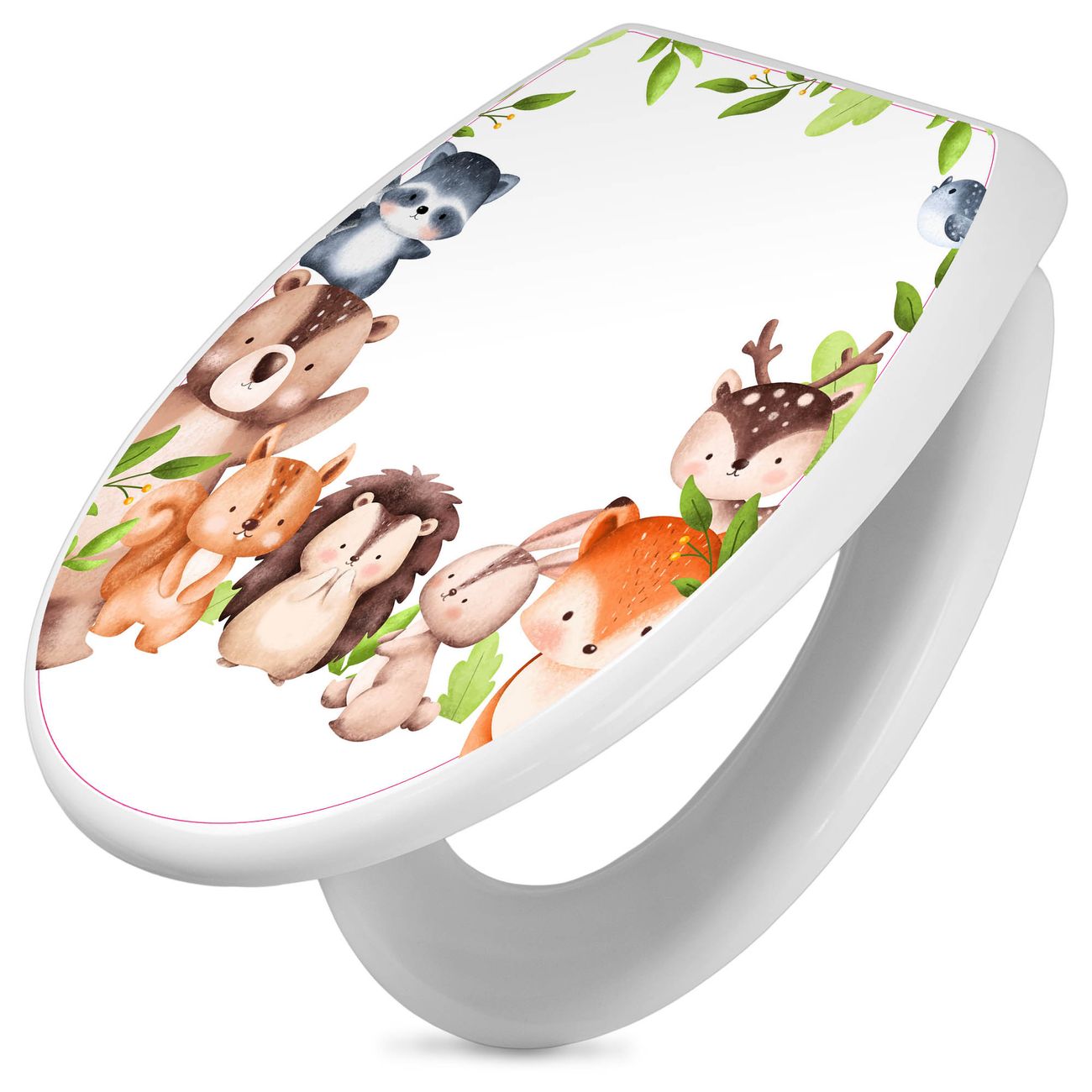 Toilettendeckel weiß mit Absenkautomatik Motiv Waldtier Freunde 2