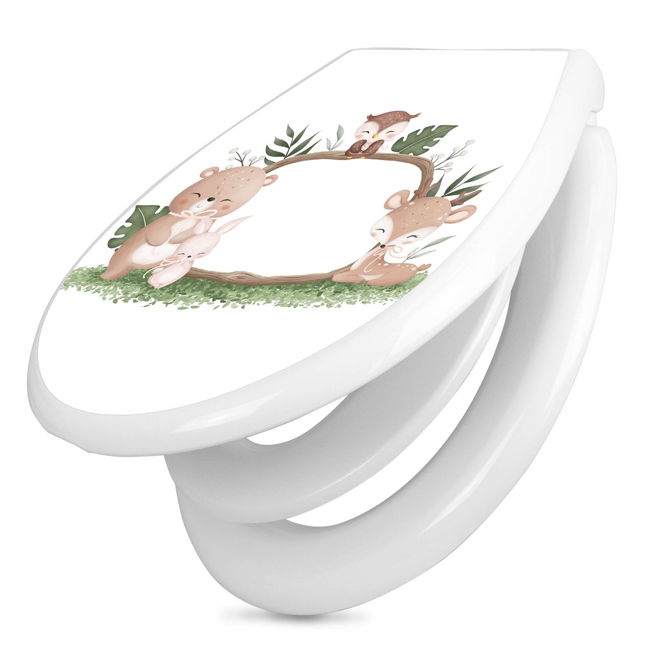 Toilettendeckel weiß mit Absenkautomatik Motiv Waldtier Freunde 3