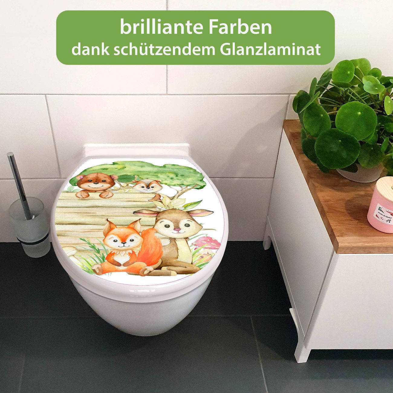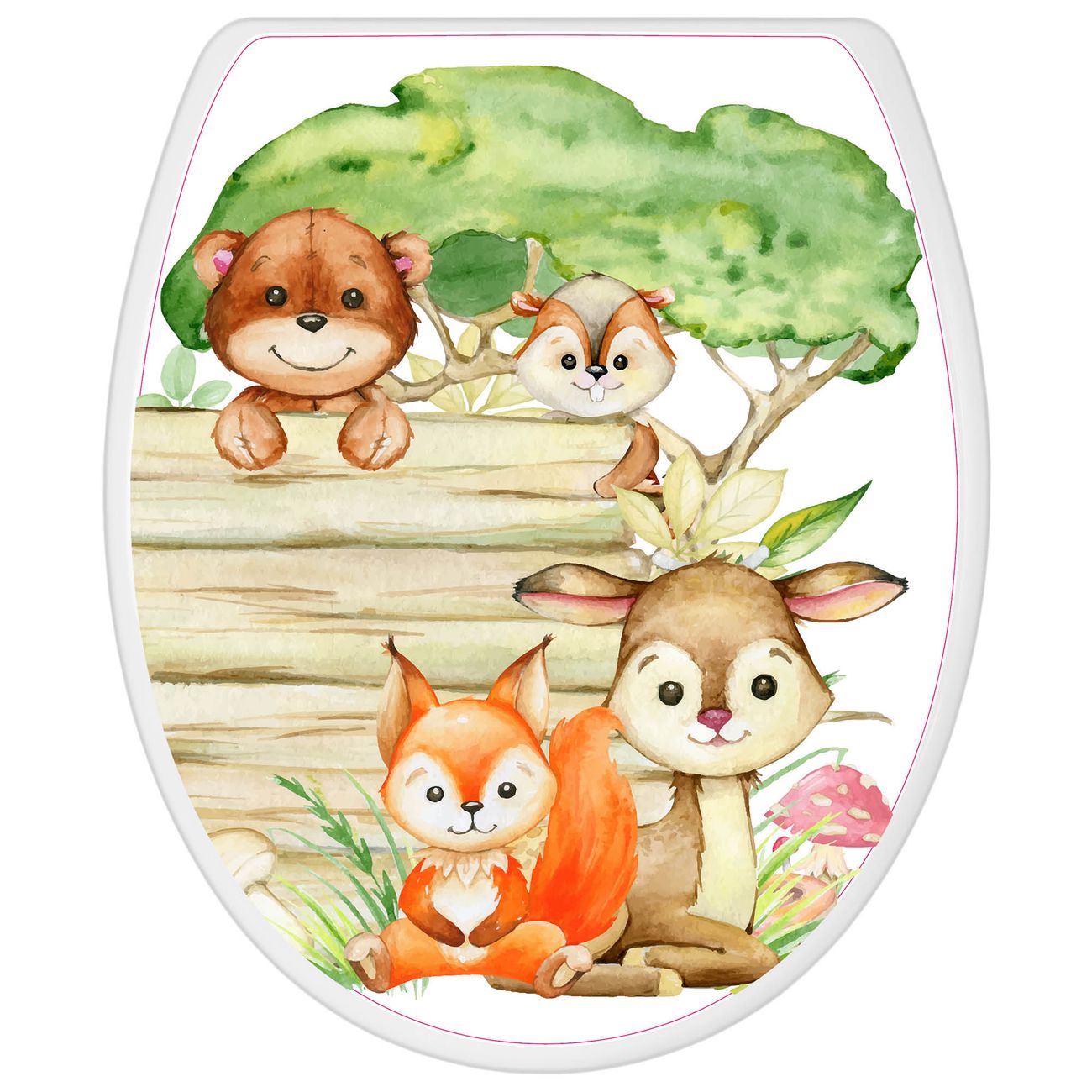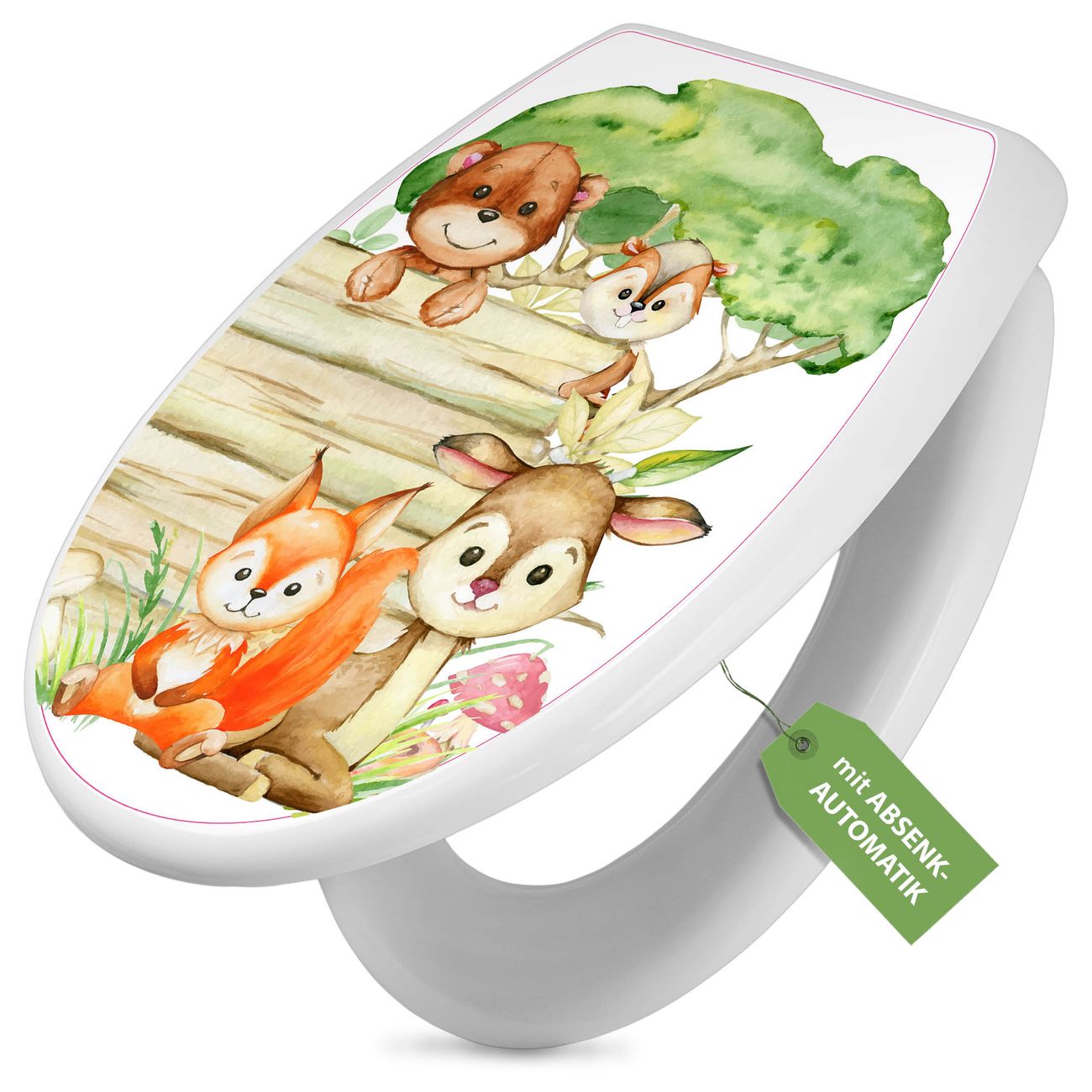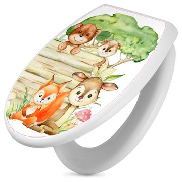 Toilettendeckel weiß mit Absenkautomatik Motiv Waldtiere Abenteuer