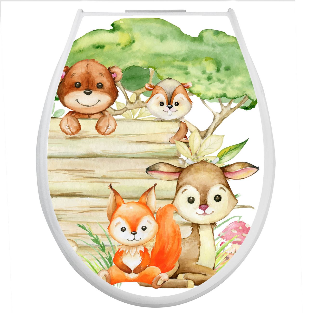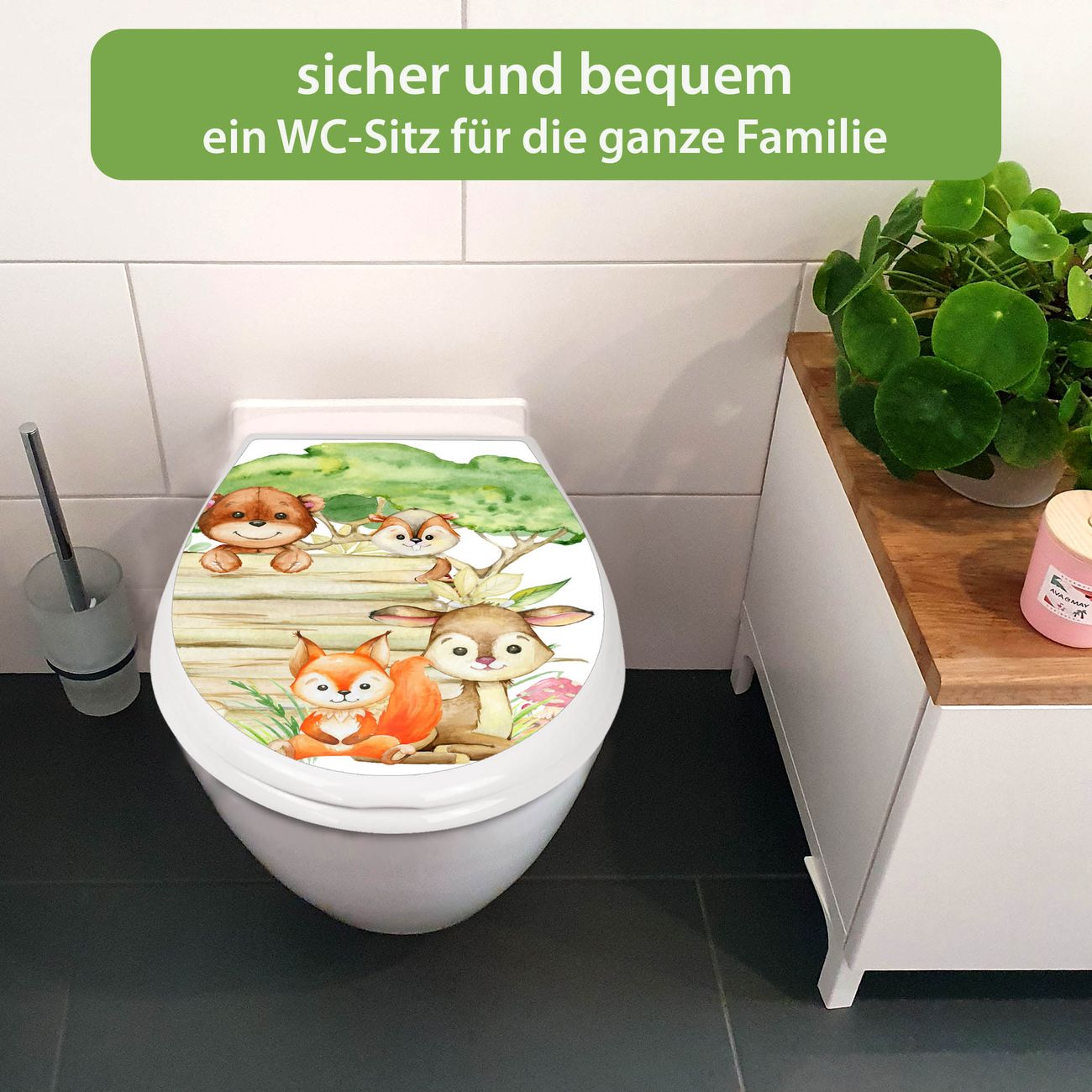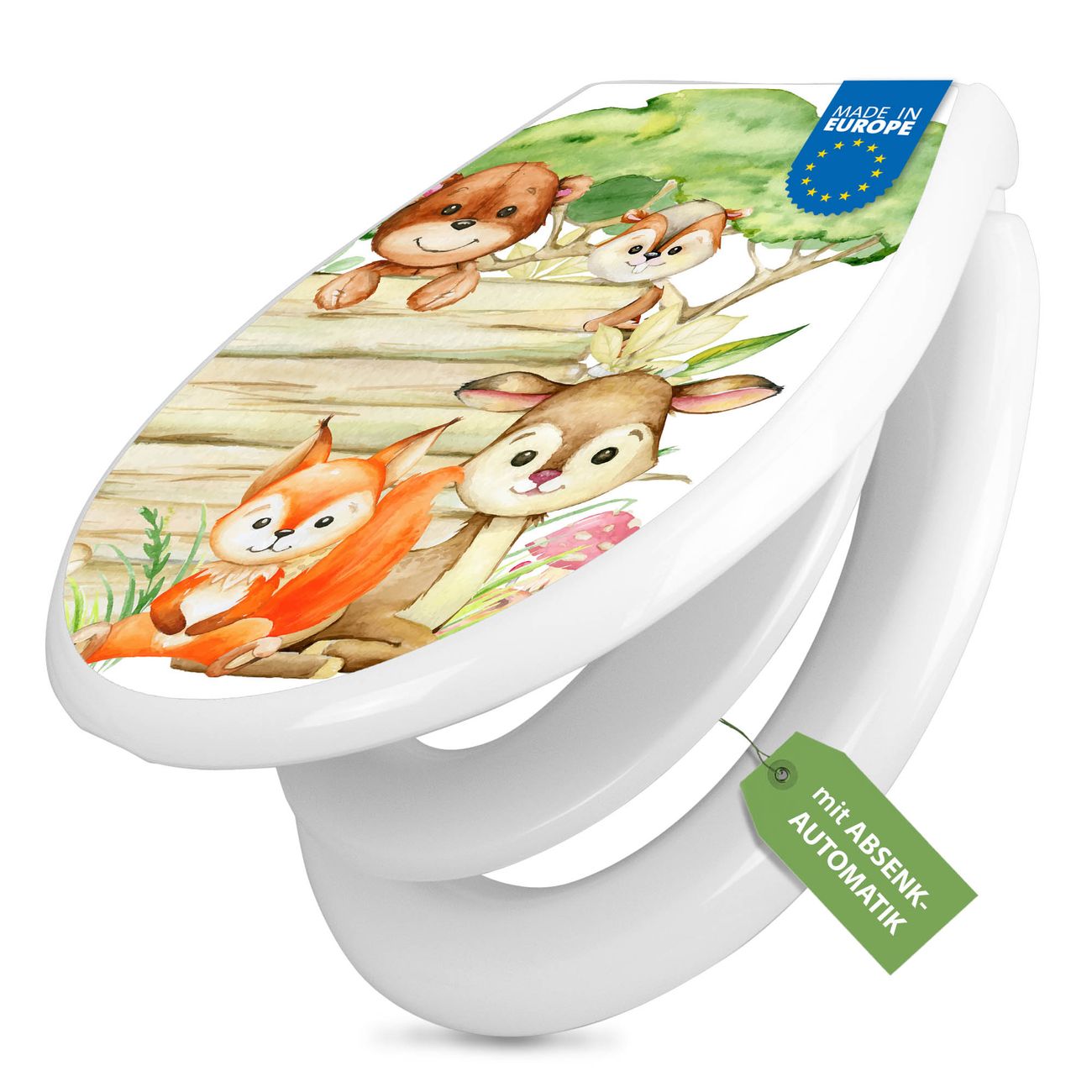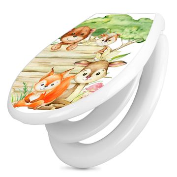 Toilettendeckel weiß mit Absenkautomatik Motiv Waldtiere Abenteuer