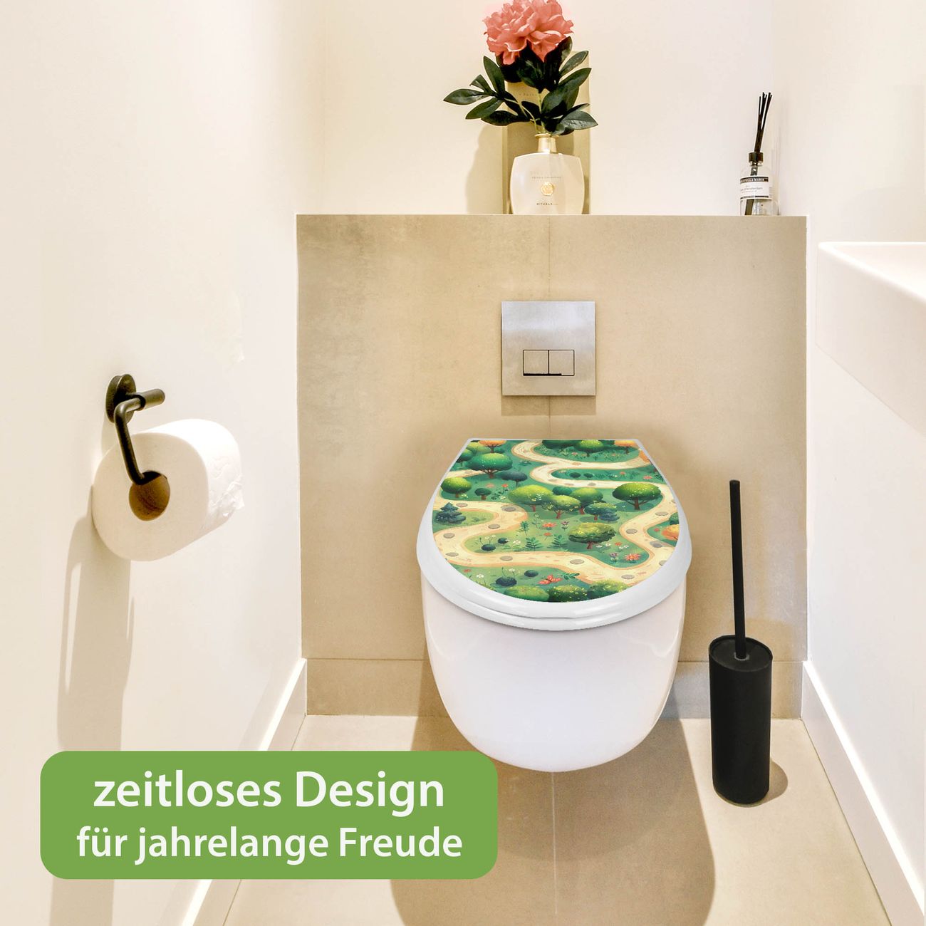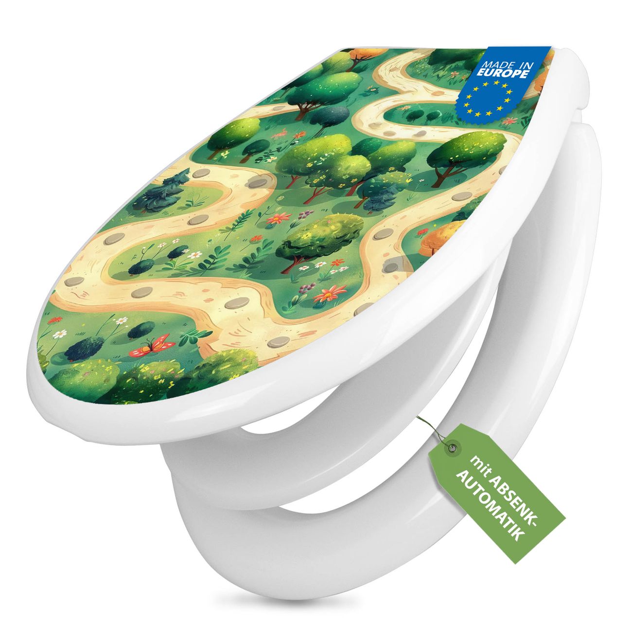 Toilettendeckel weiß mit Absenkautomatik Motiv Waldweg