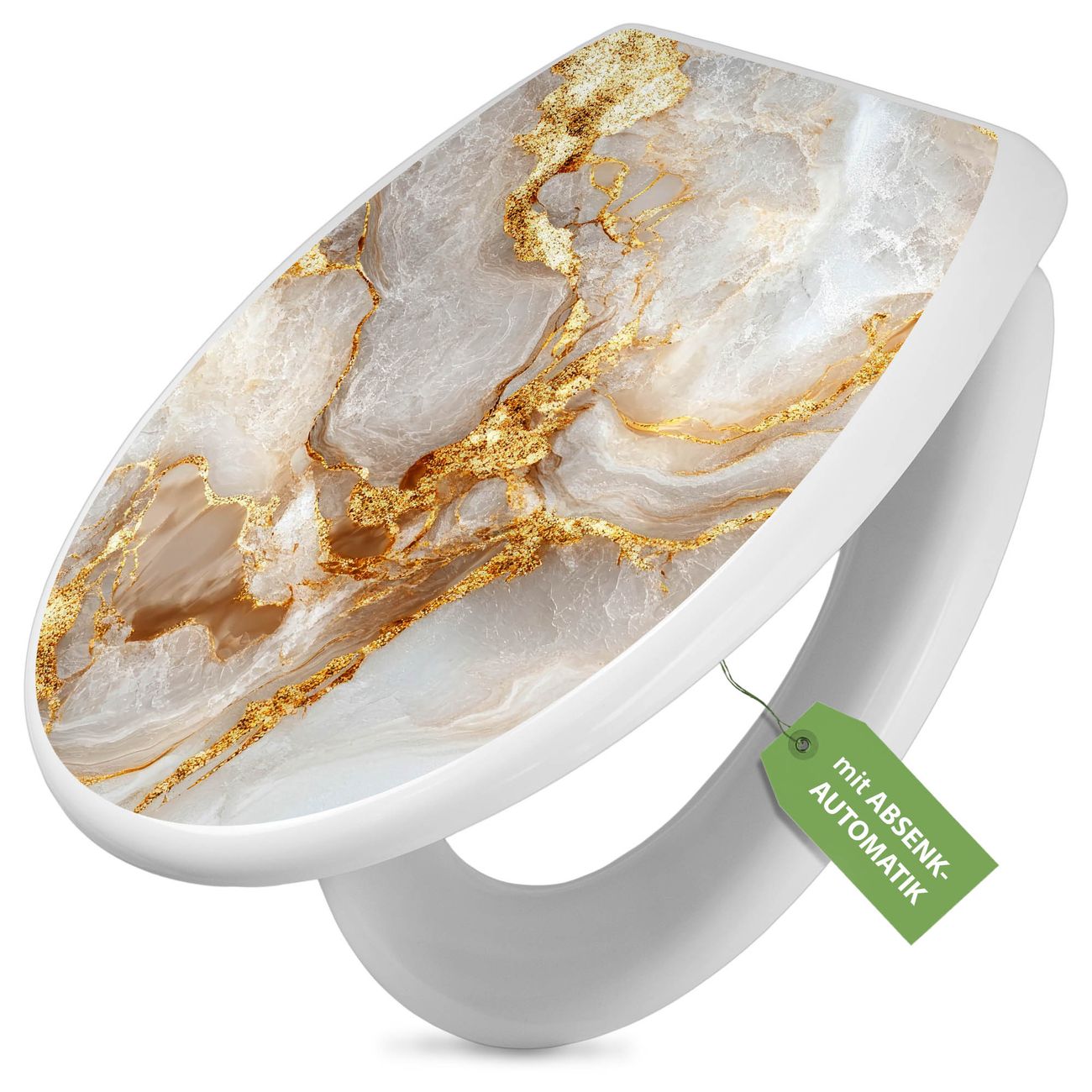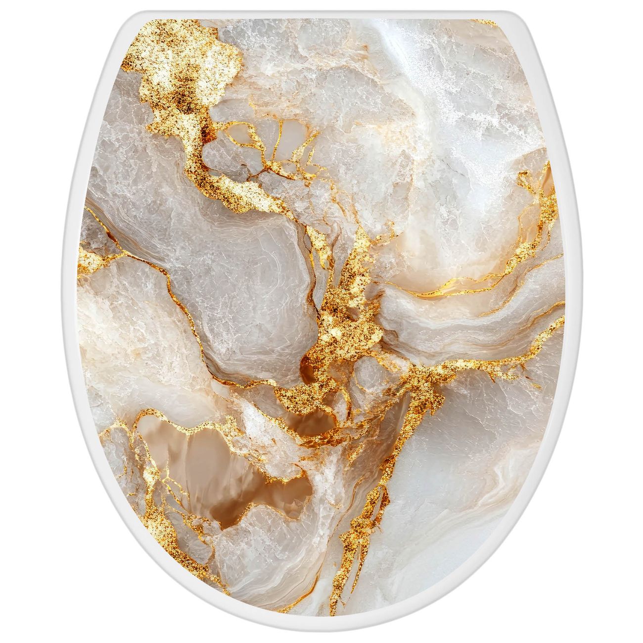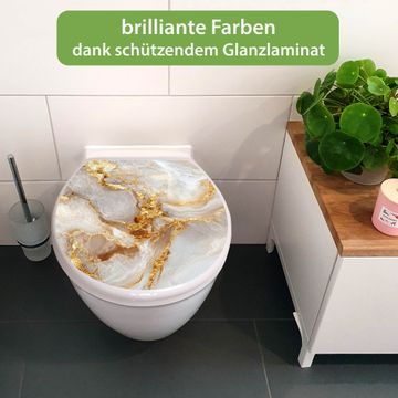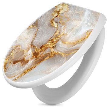 Toilettendeckel weiß mit Absenkautomatik Motiv Weißer Marmor mit Gold 1