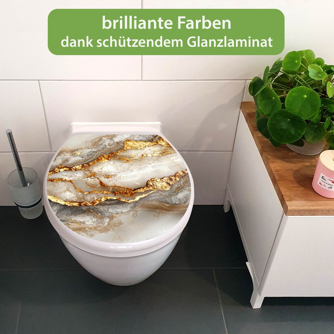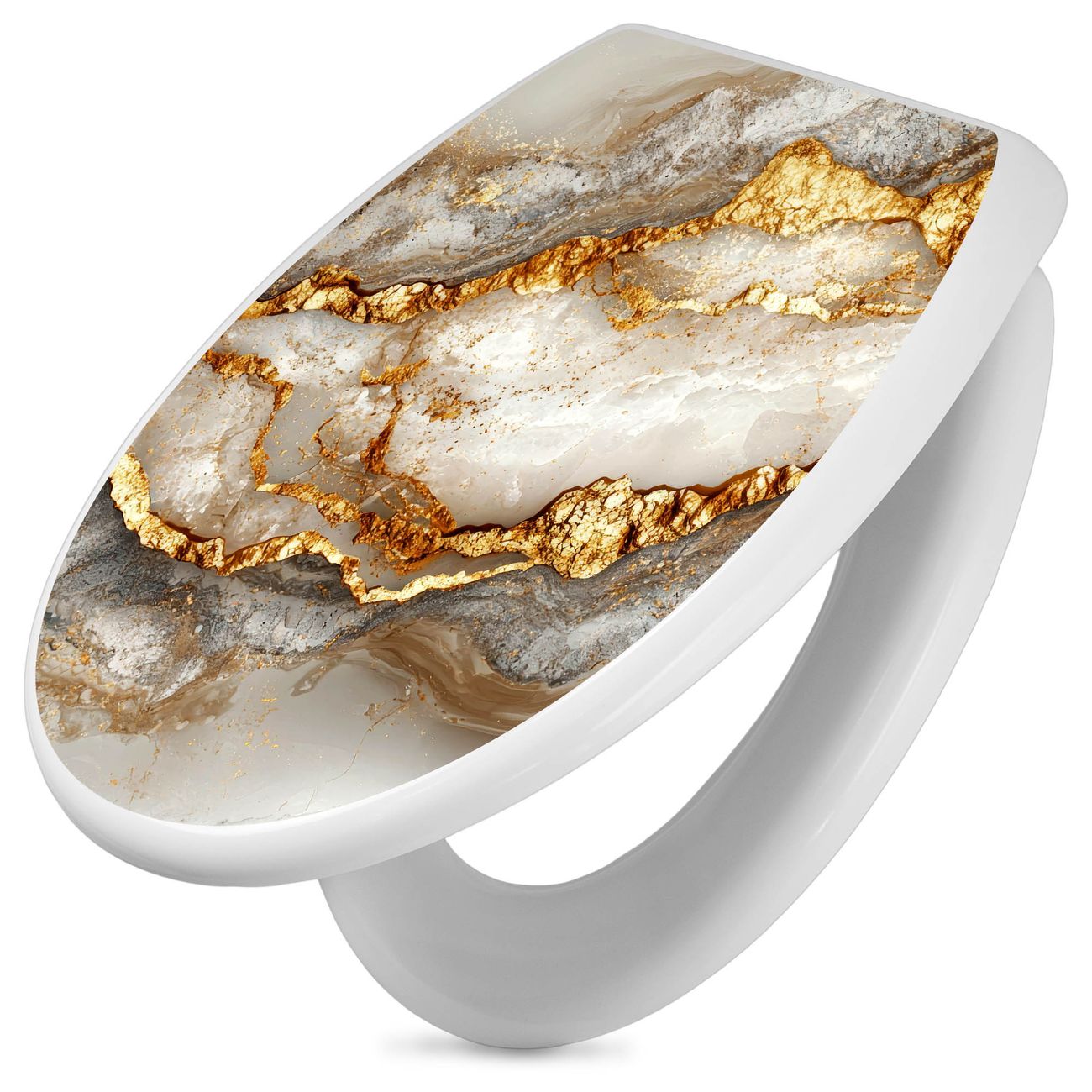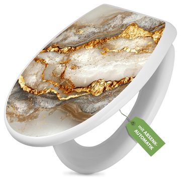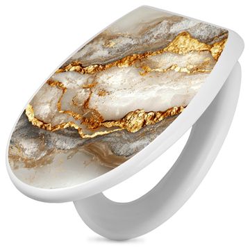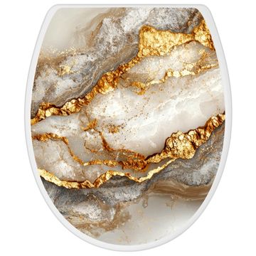 Toilettendeckel weiß mit Absenkautomatik Motiv Weißer Marmor mit Gold 2