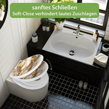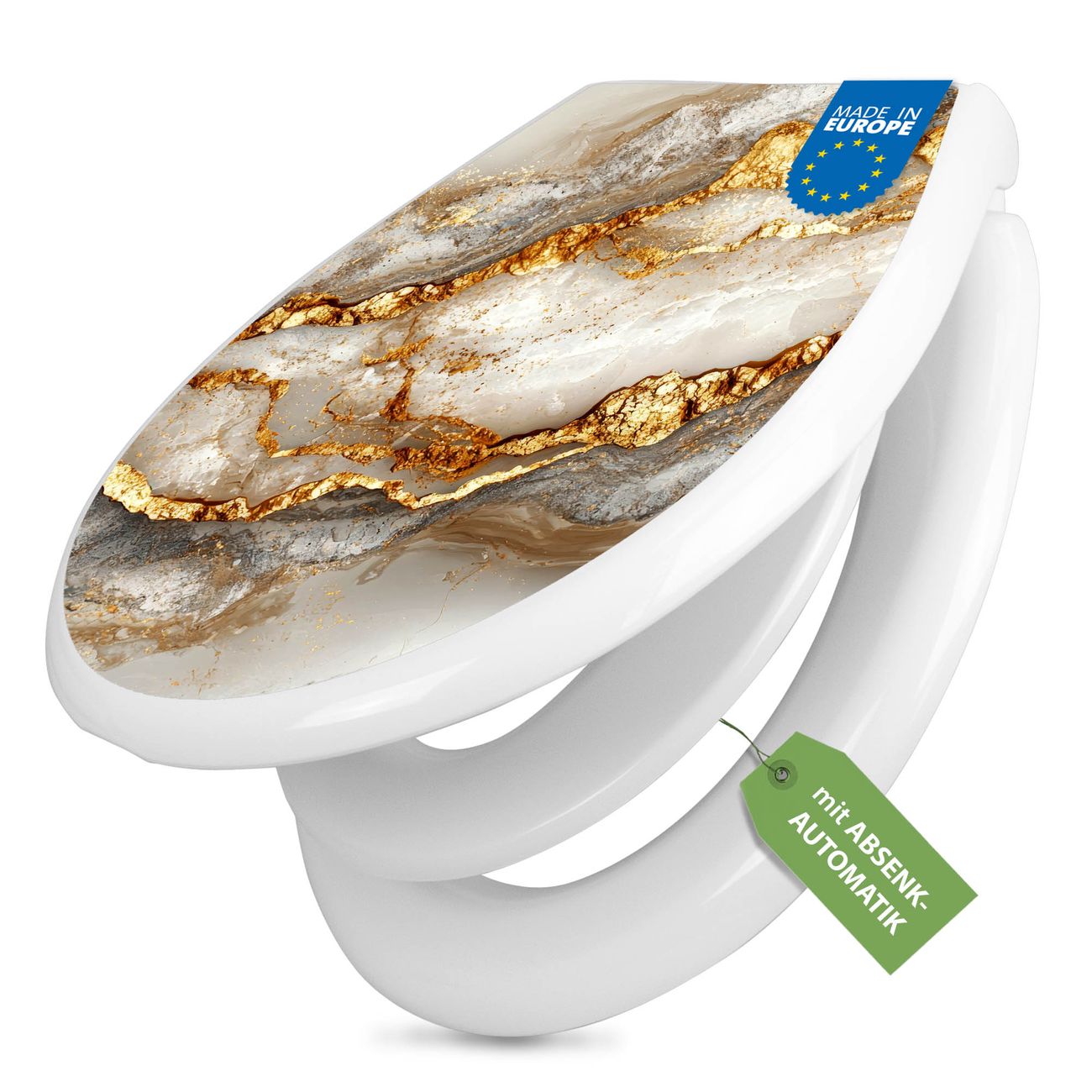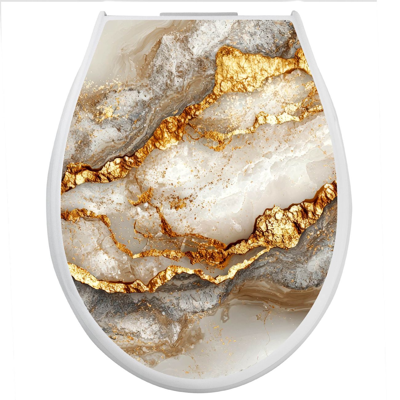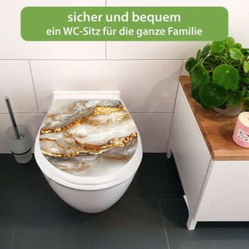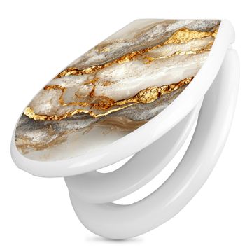 Toilettendeckel weiß mit Absenkautomatik Motiv Weißer Marmor mit Gold 2