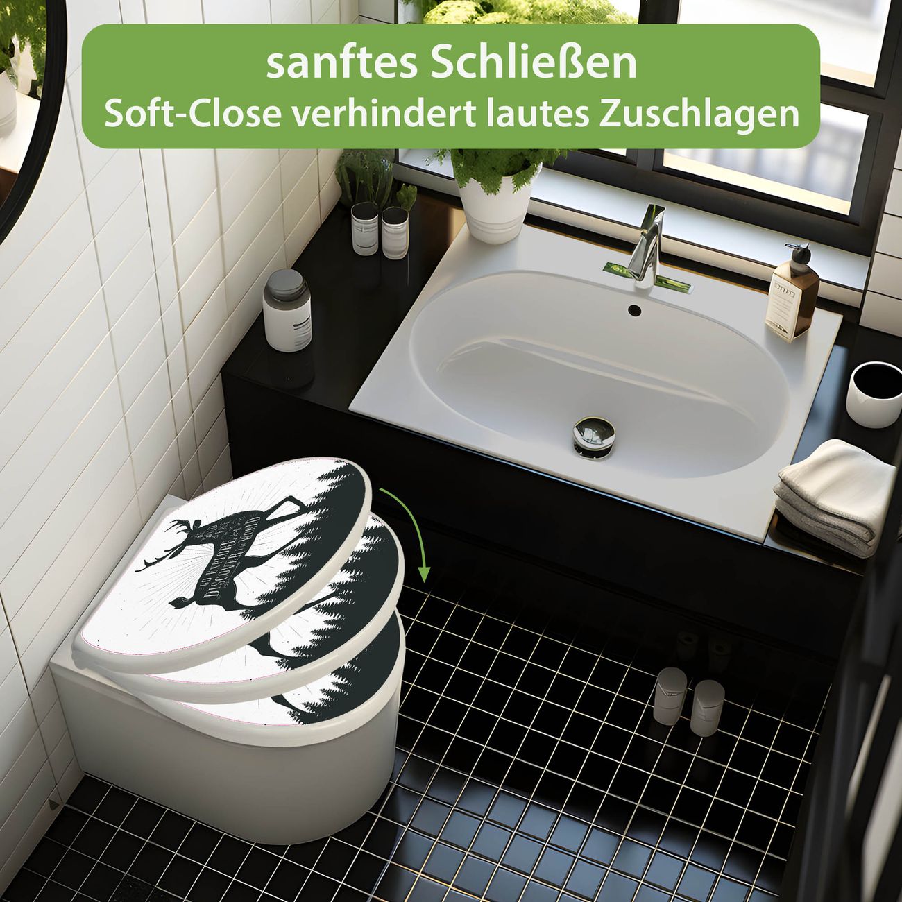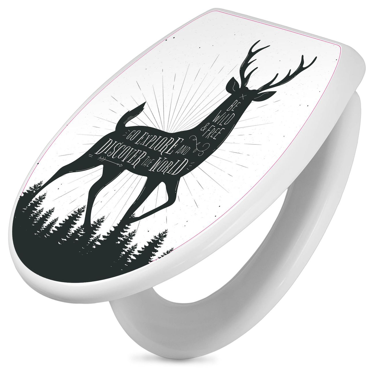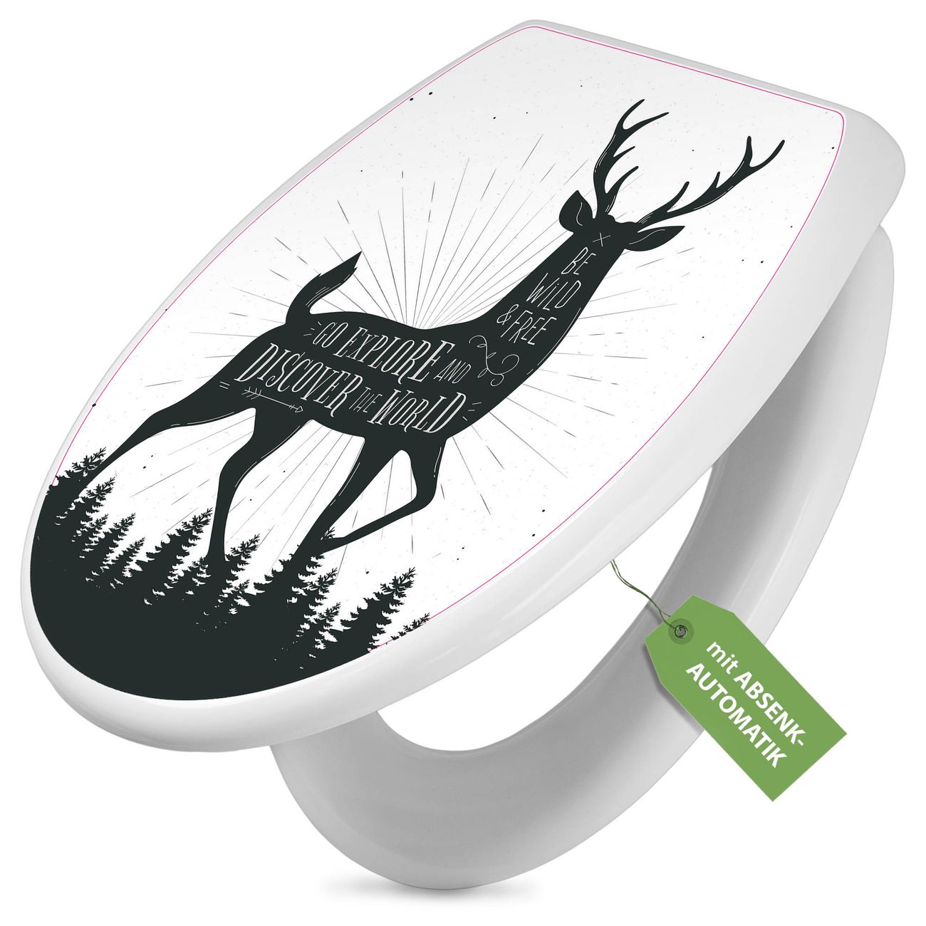Toilettendeckel weiß mit Absenkautomatik Motiv Wilder Hirsch