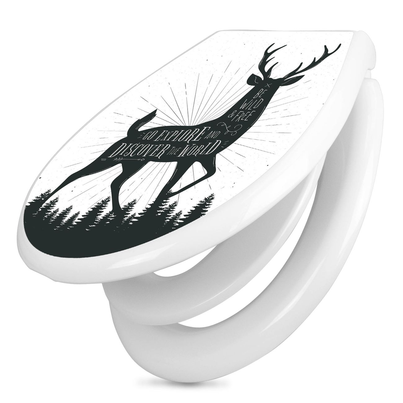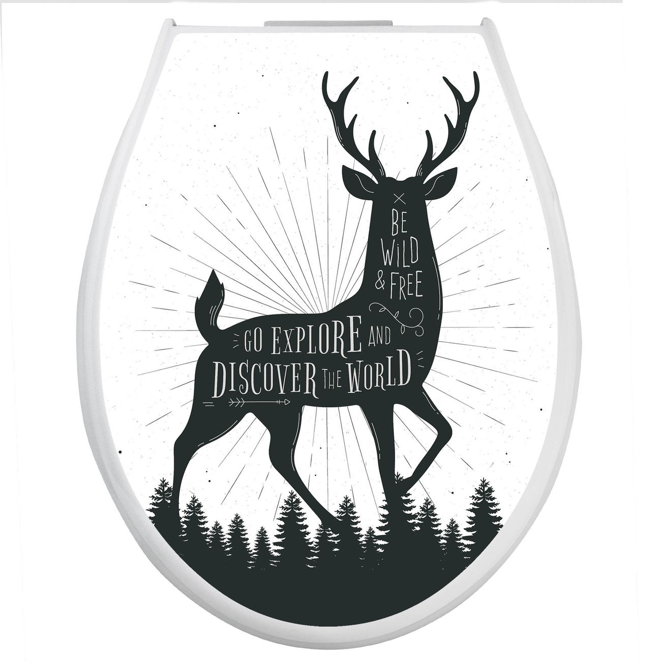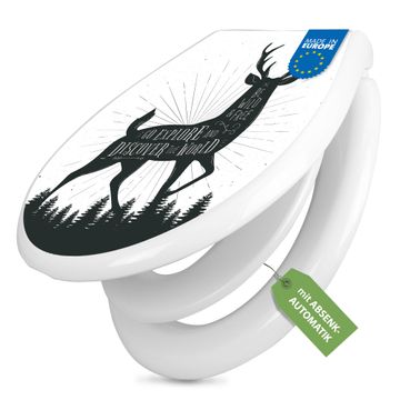 Toilettendeckel weiß mit Absenkautomatik Motiv Wilder Hirsch