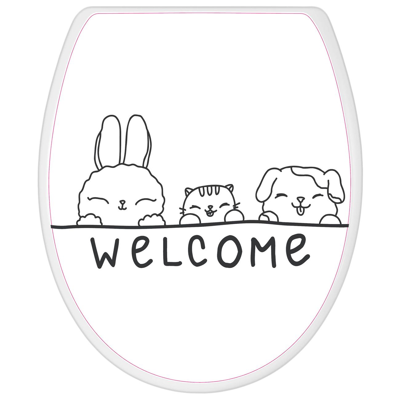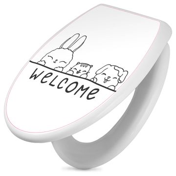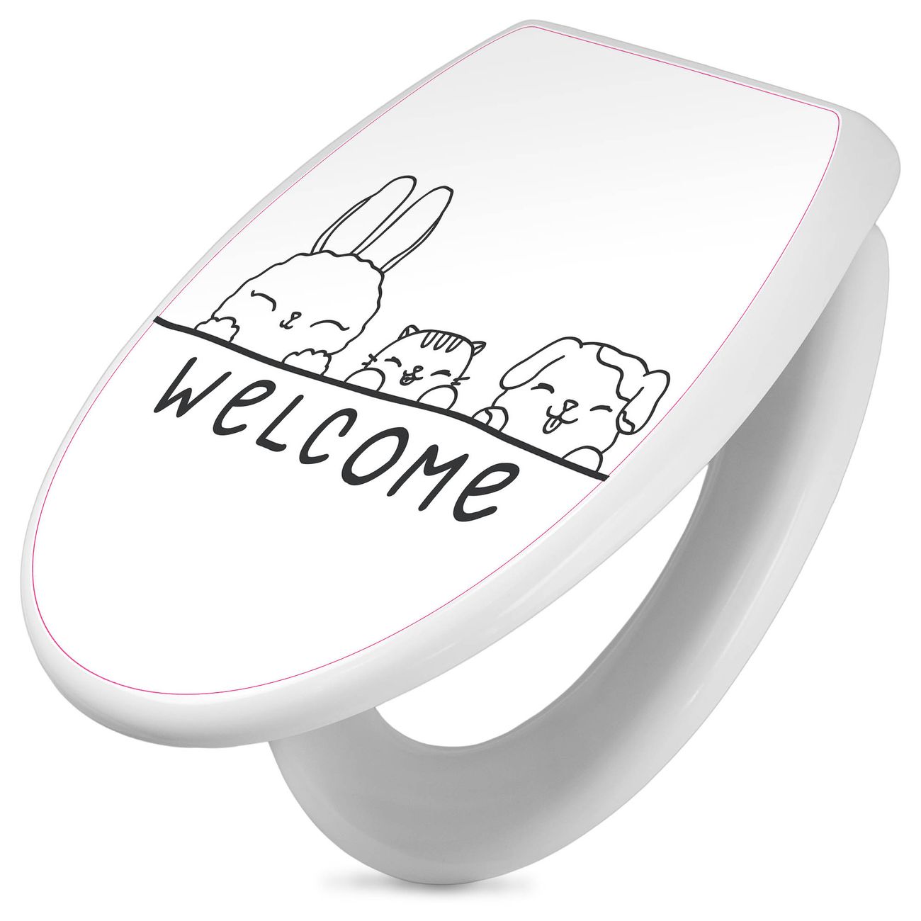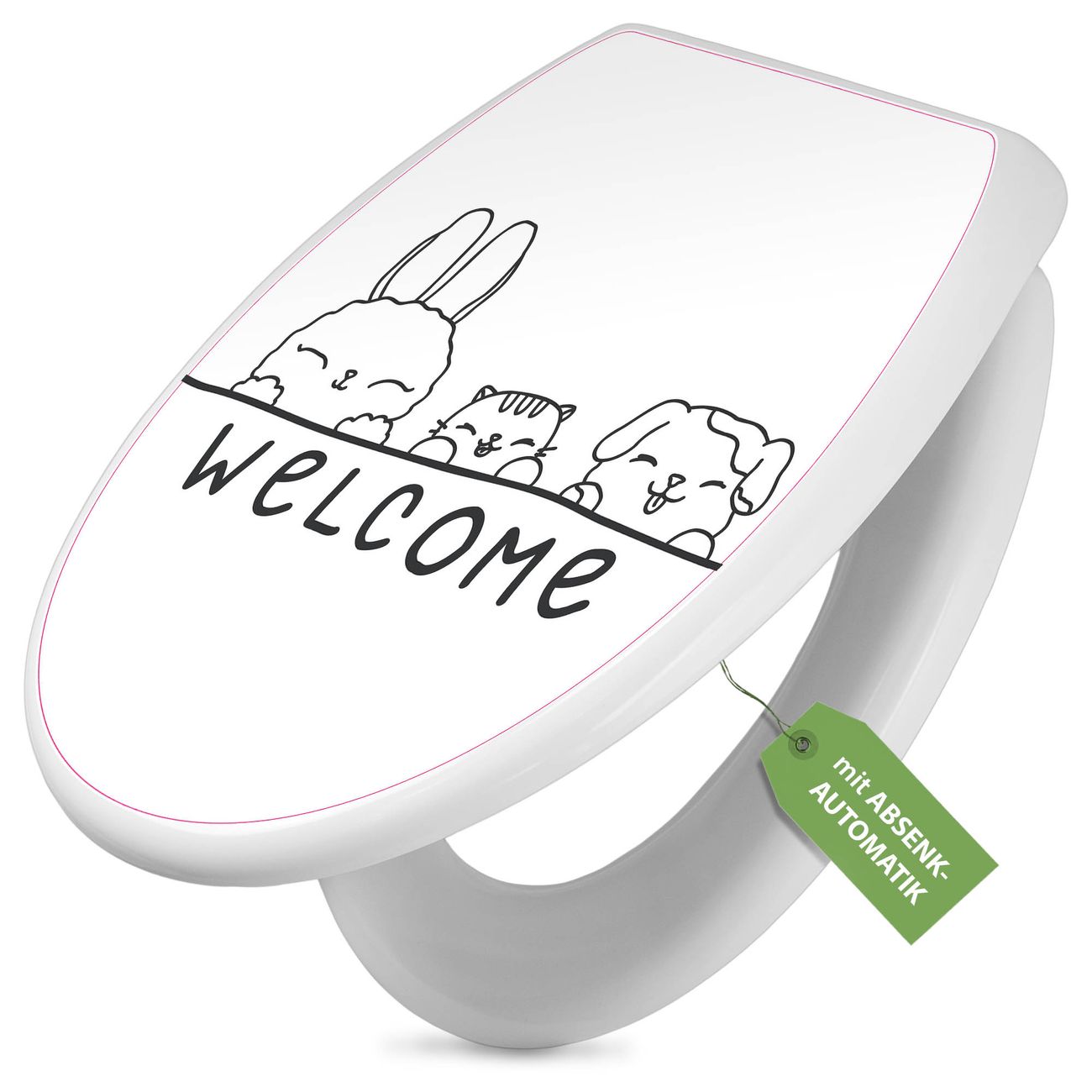 Toilettendeckel weiß mit Absenkautomatik Motiv Willkommensfreunde
