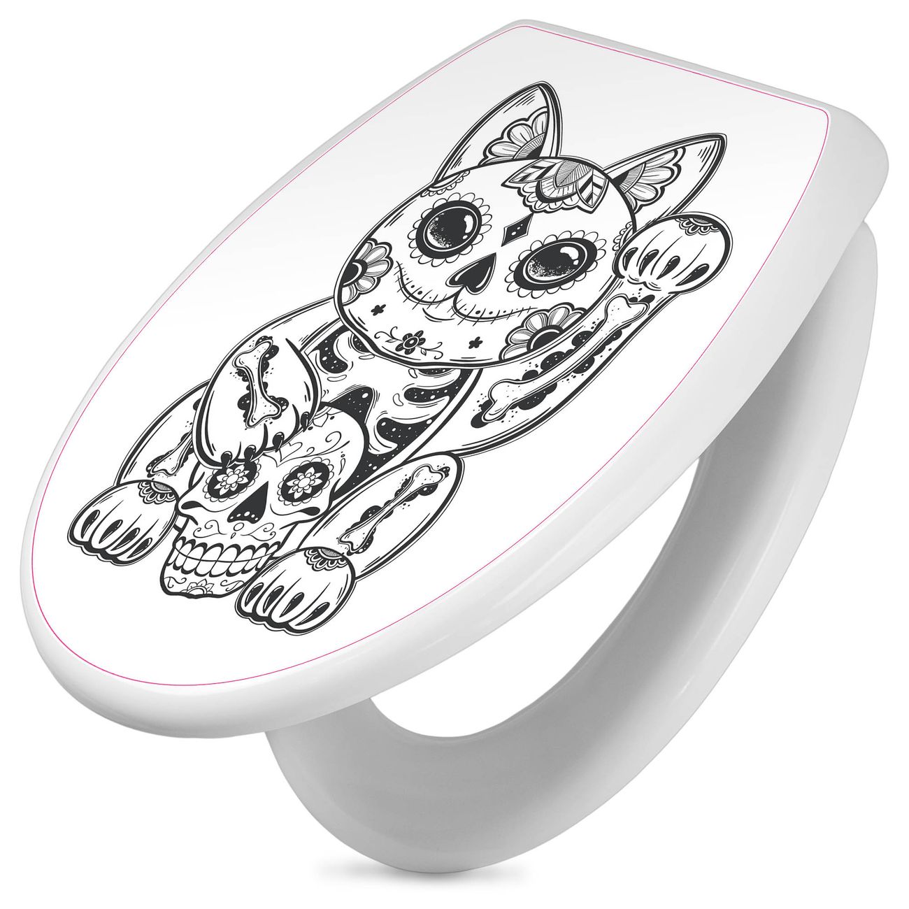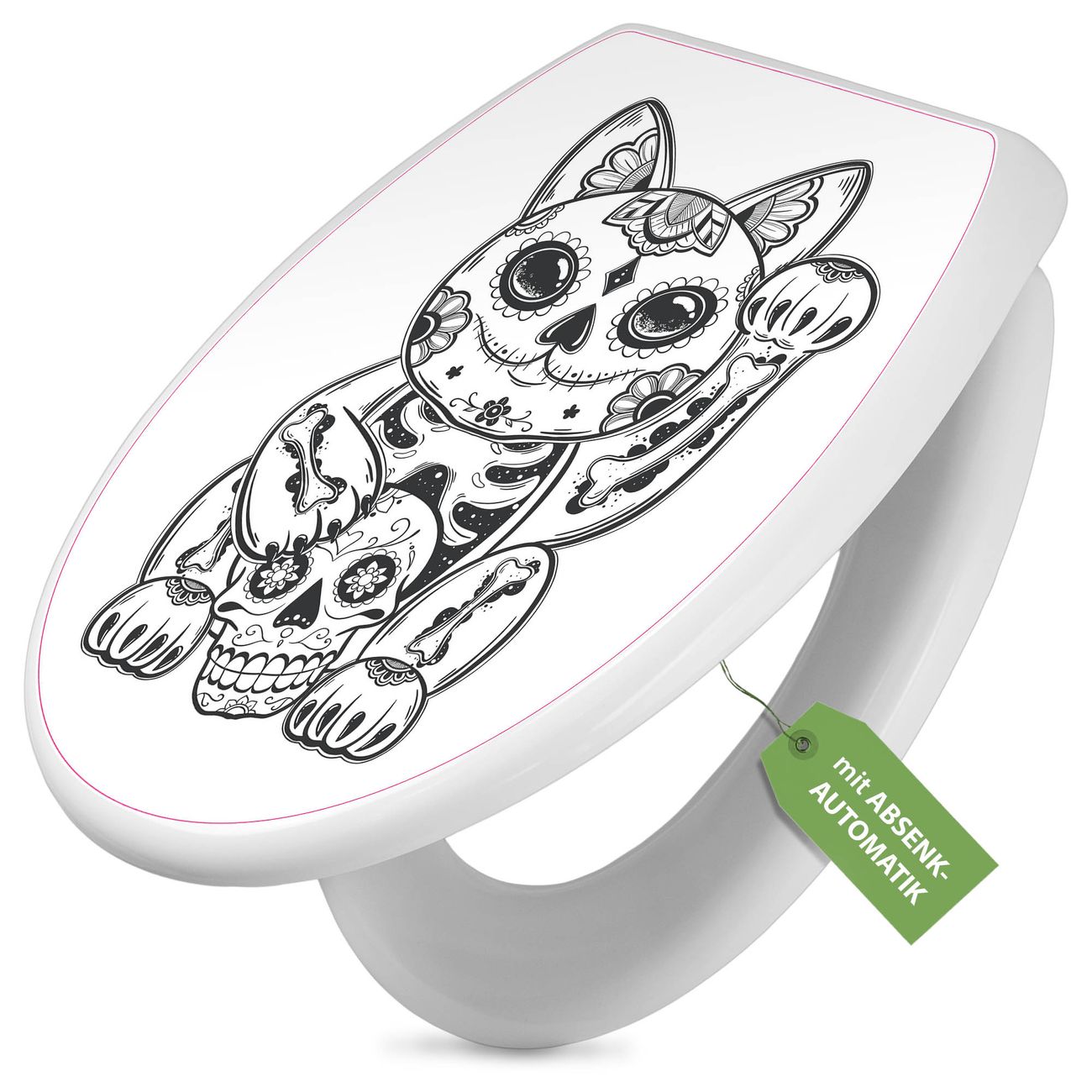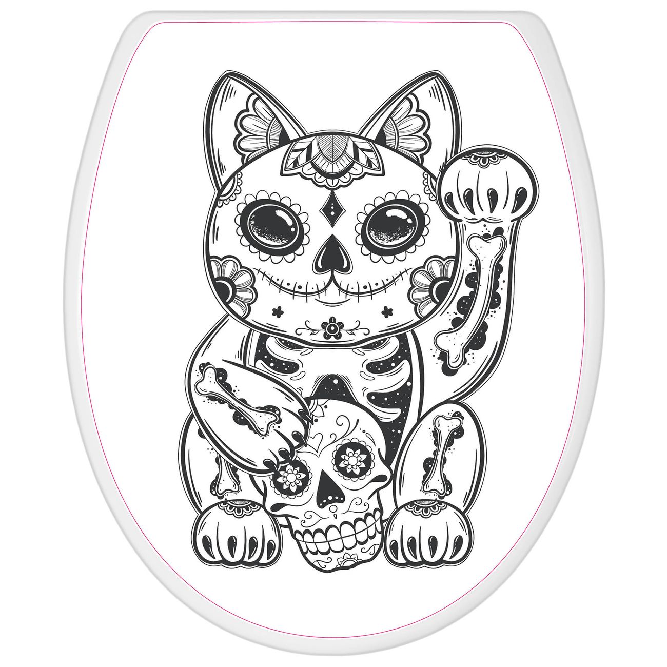 Toilettendeckel weiß mit Absenkautomatik Motiv Winkekatze 2