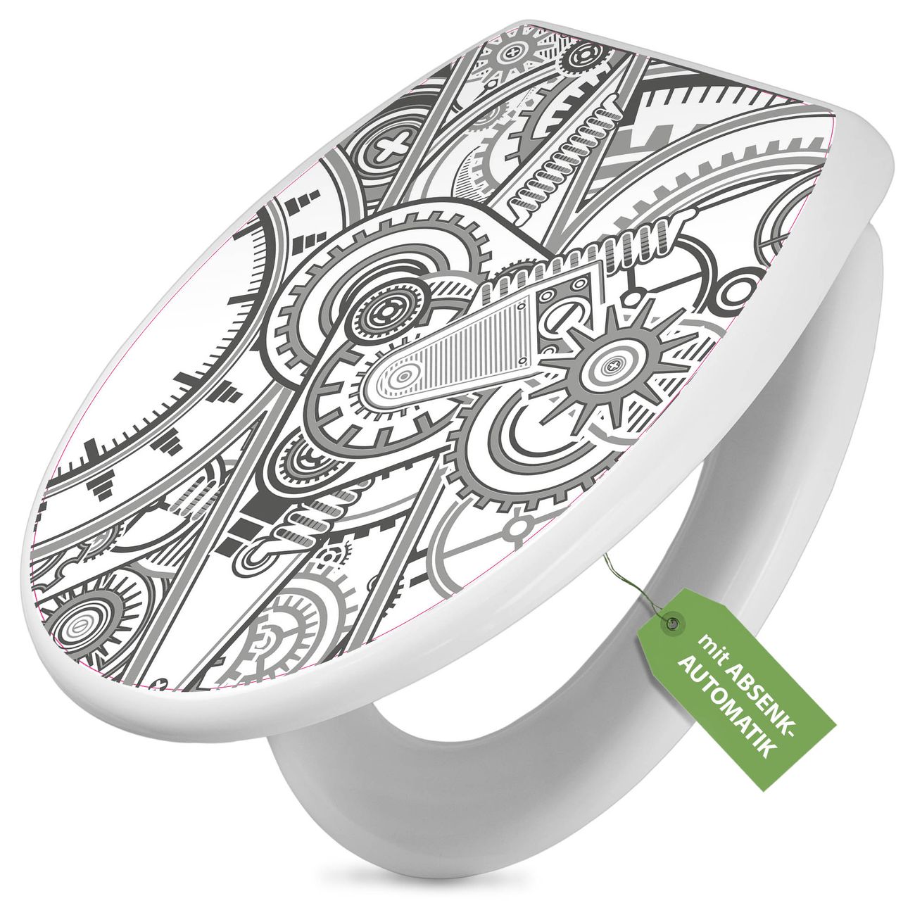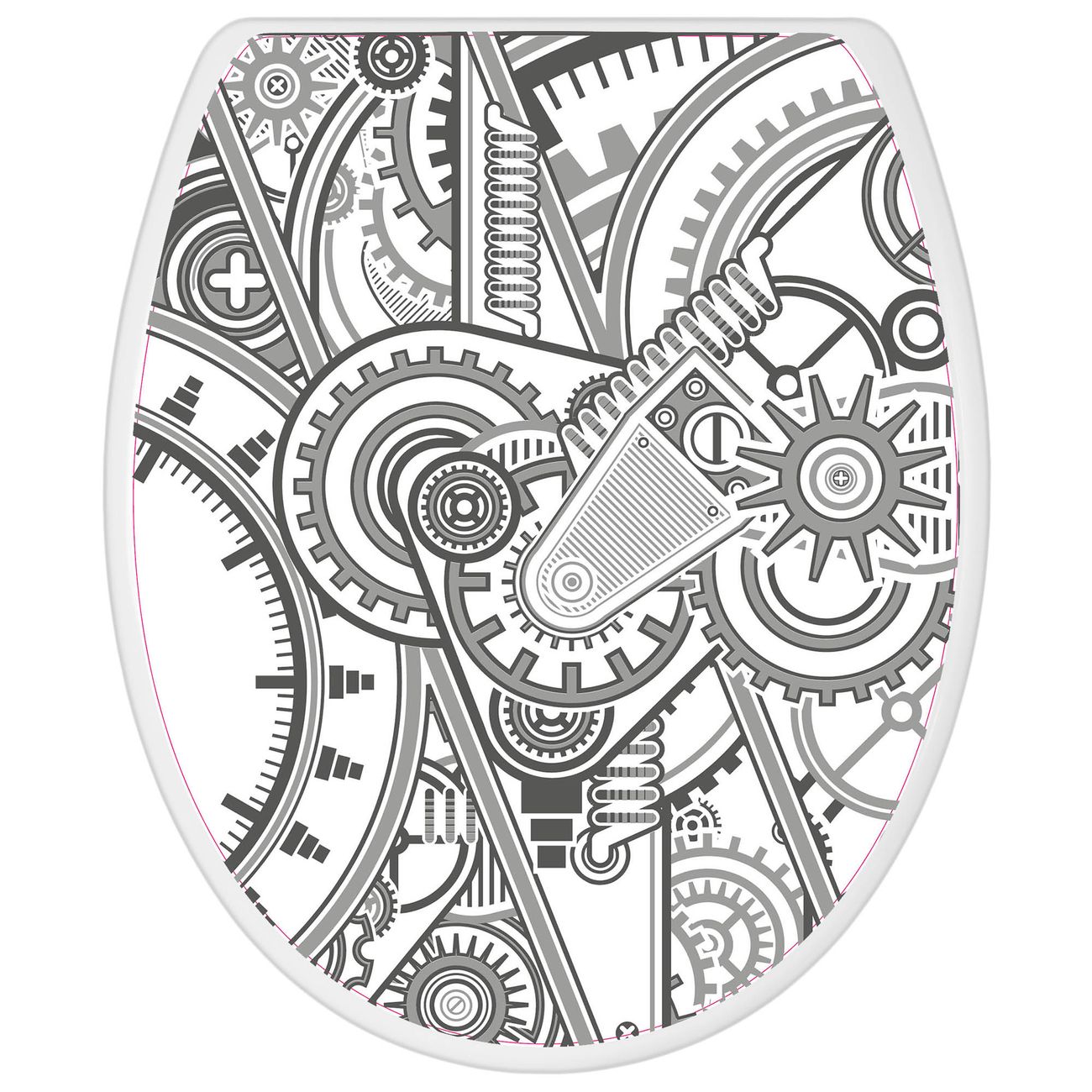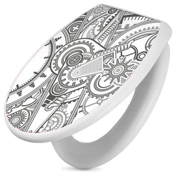 Toilettendeckel weiß mit Absenkautomatik Motiv Zahnradgeometrie