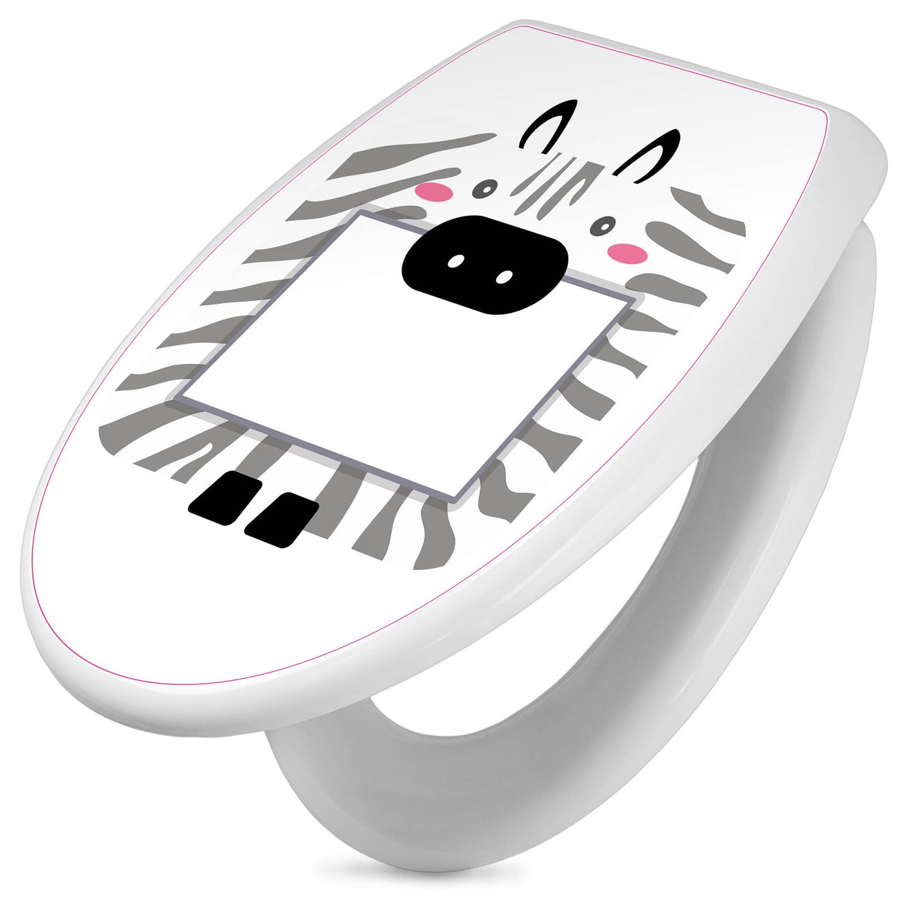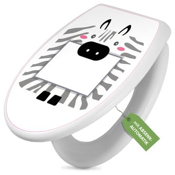 Toilettendeckel weiß mit Absenkautomatik Motiv Zebra Bilderrahmen