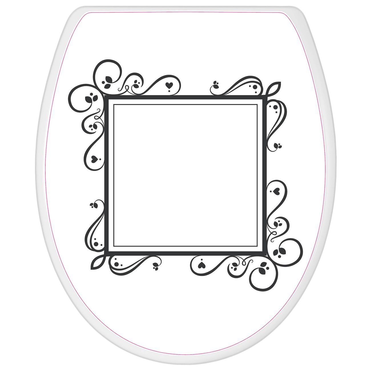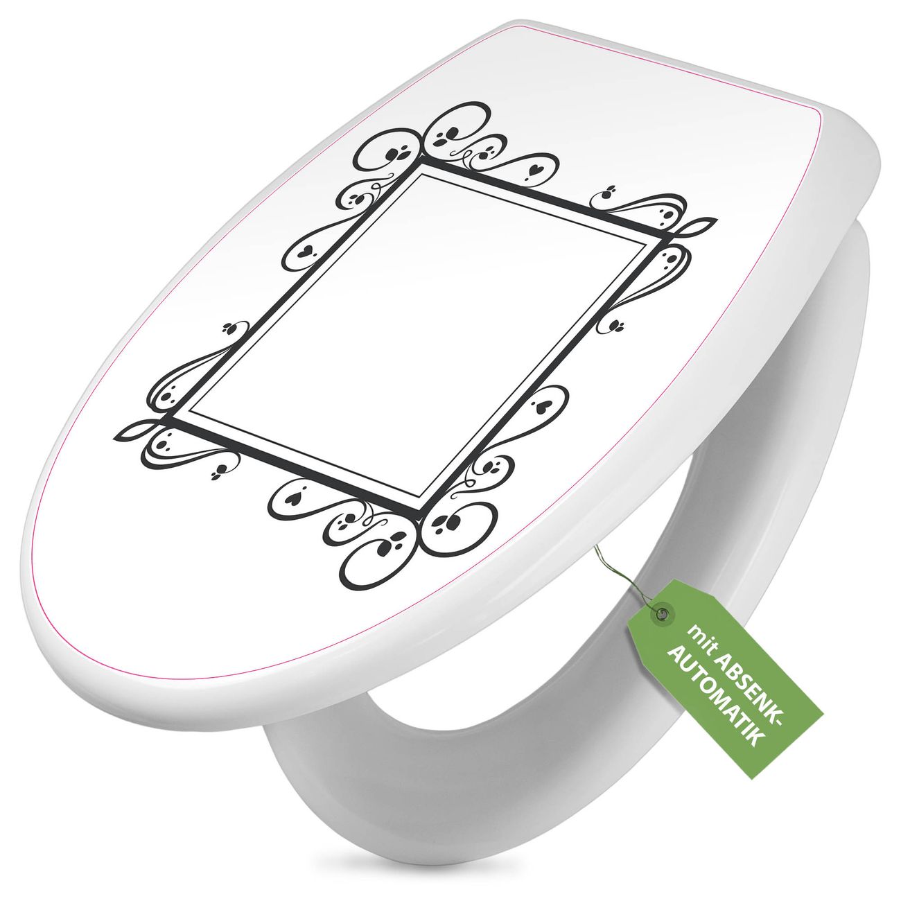 Toilettendeckel weiß mit Absenkautomatik Motiv Zierlicher Rahmen mit Herzen