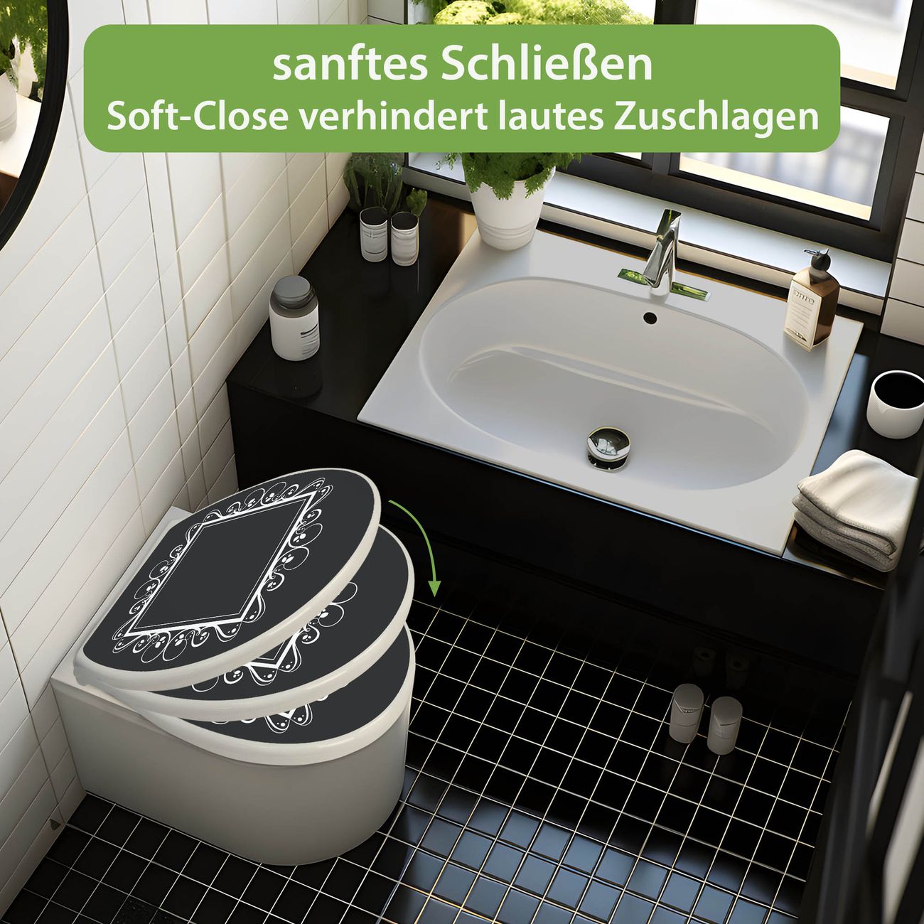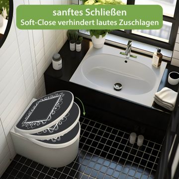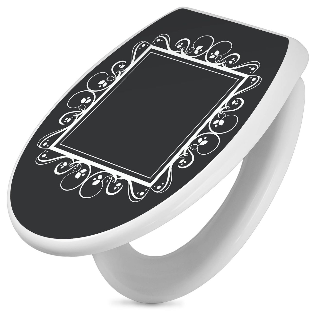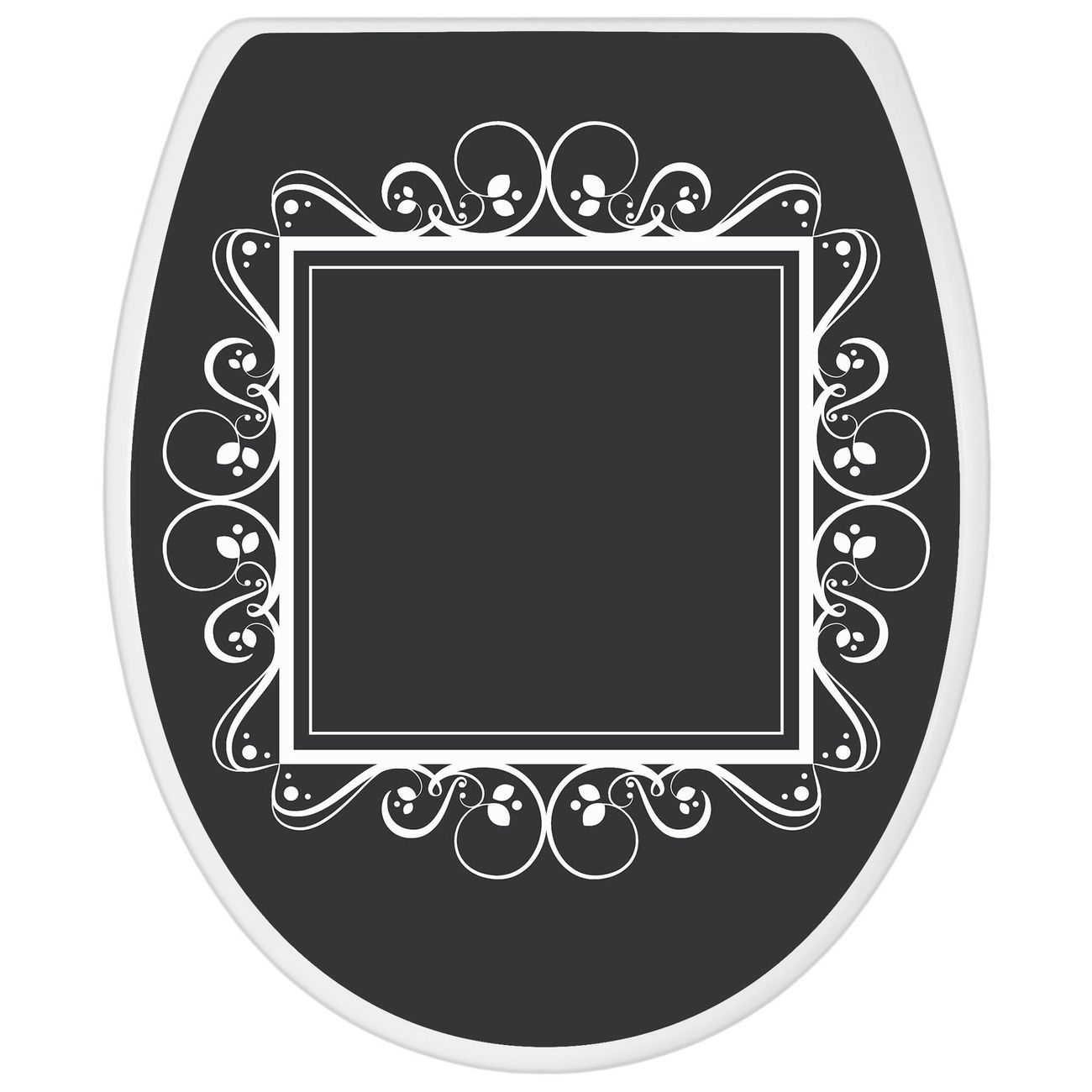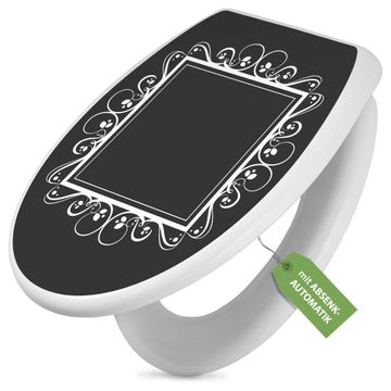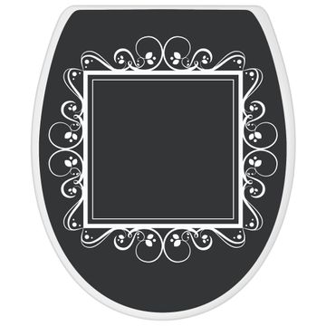 Toilettendeckel weiß mit Absenkautomatik Motiv Zierrahmen Grau-Weiß