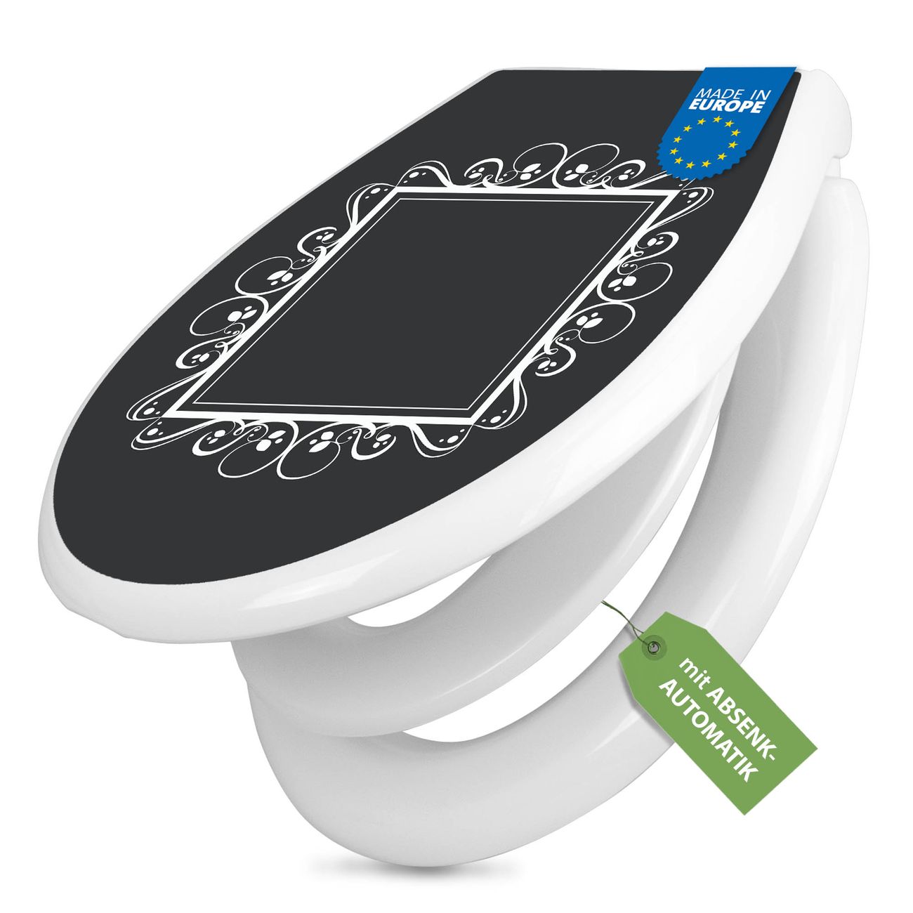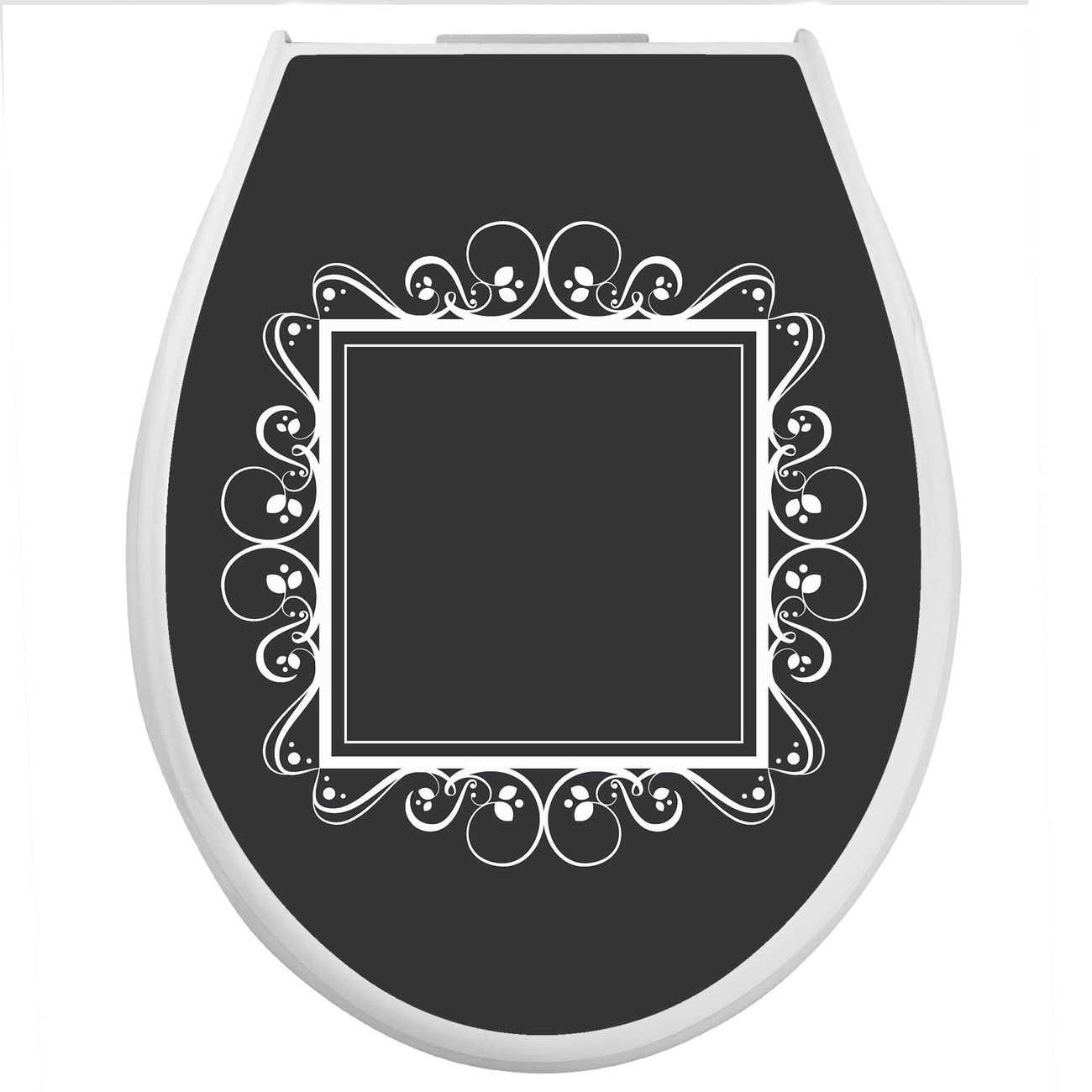 Toilettendeckel weiß mit Absenkautomatik Motiv Zierrahmen Grau-Weiß
