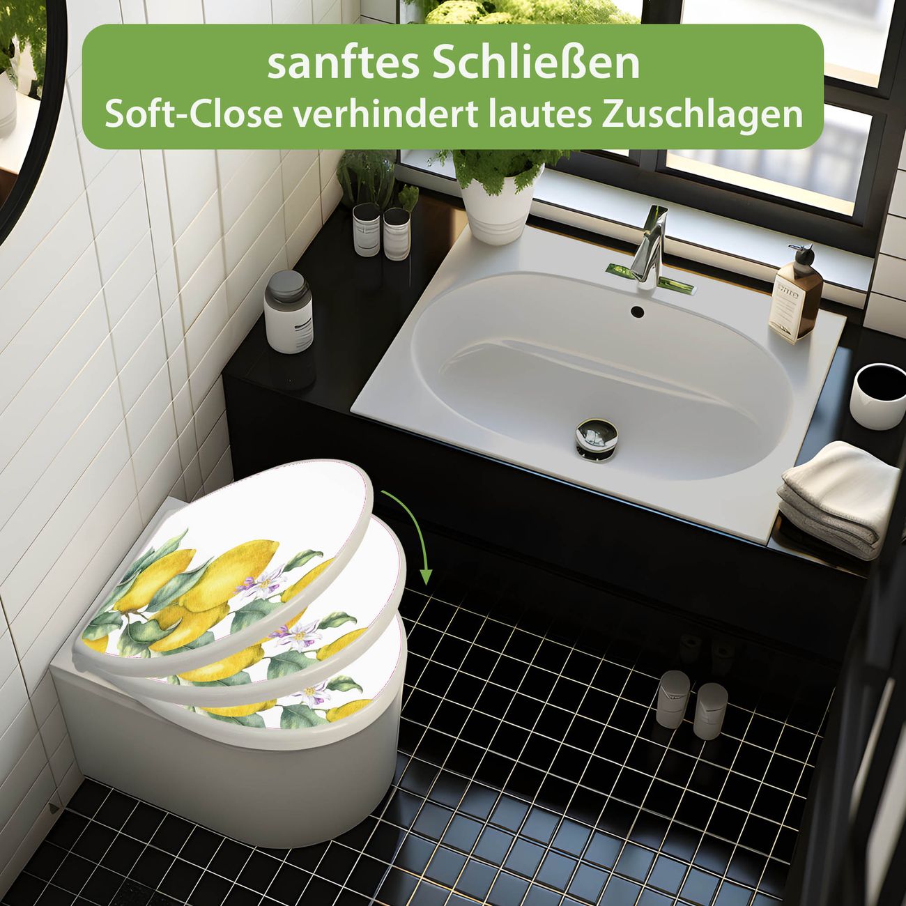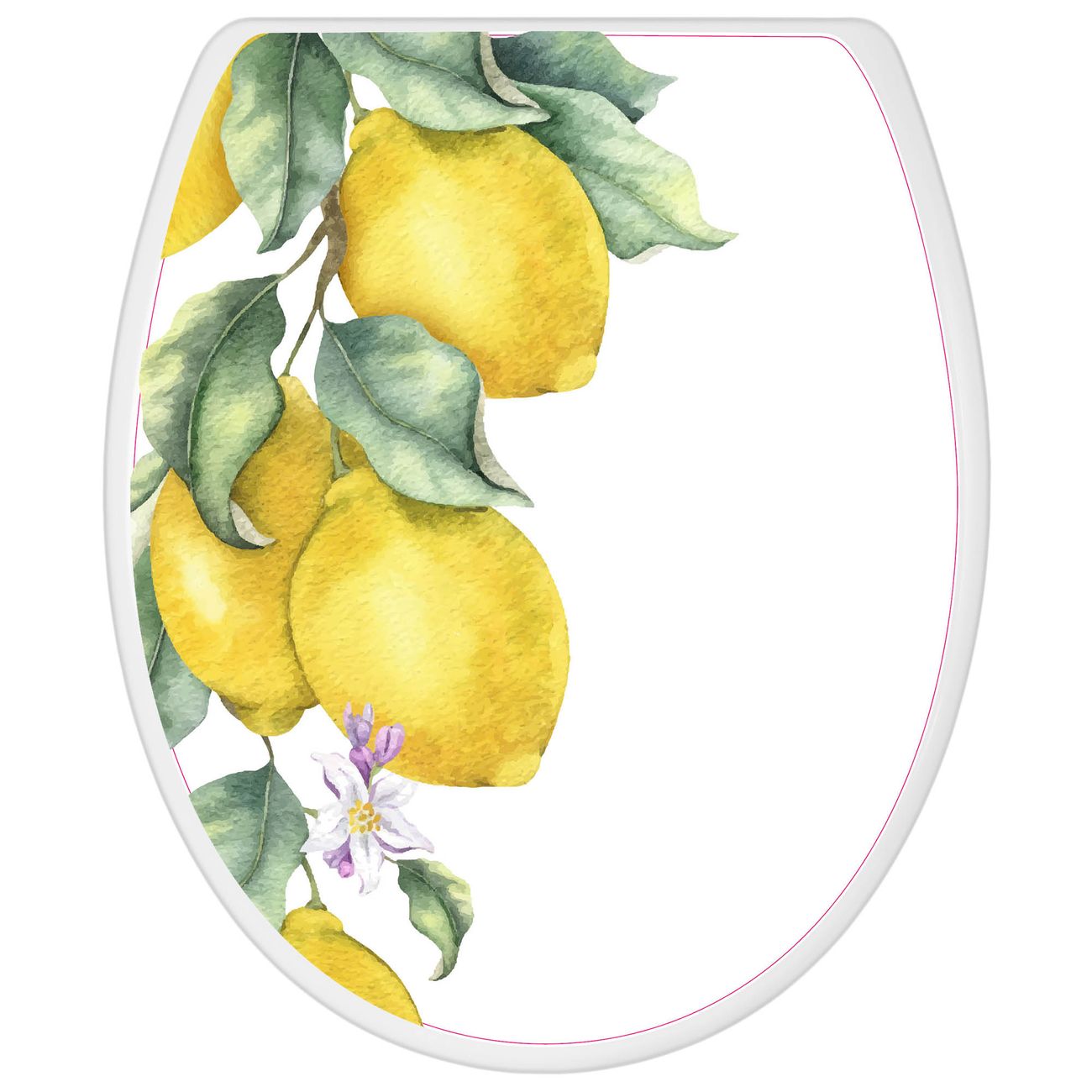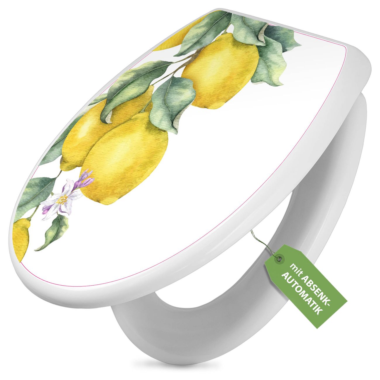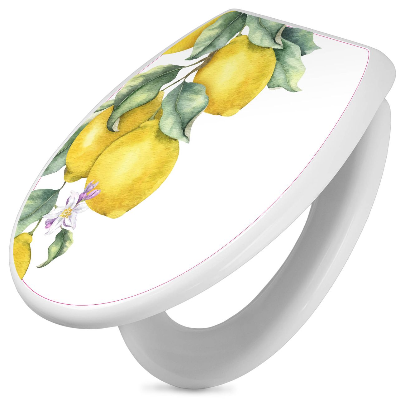 Toilettendeckel weiß mit Absenkautomatik Motiv Zitronenzweig Aquarell