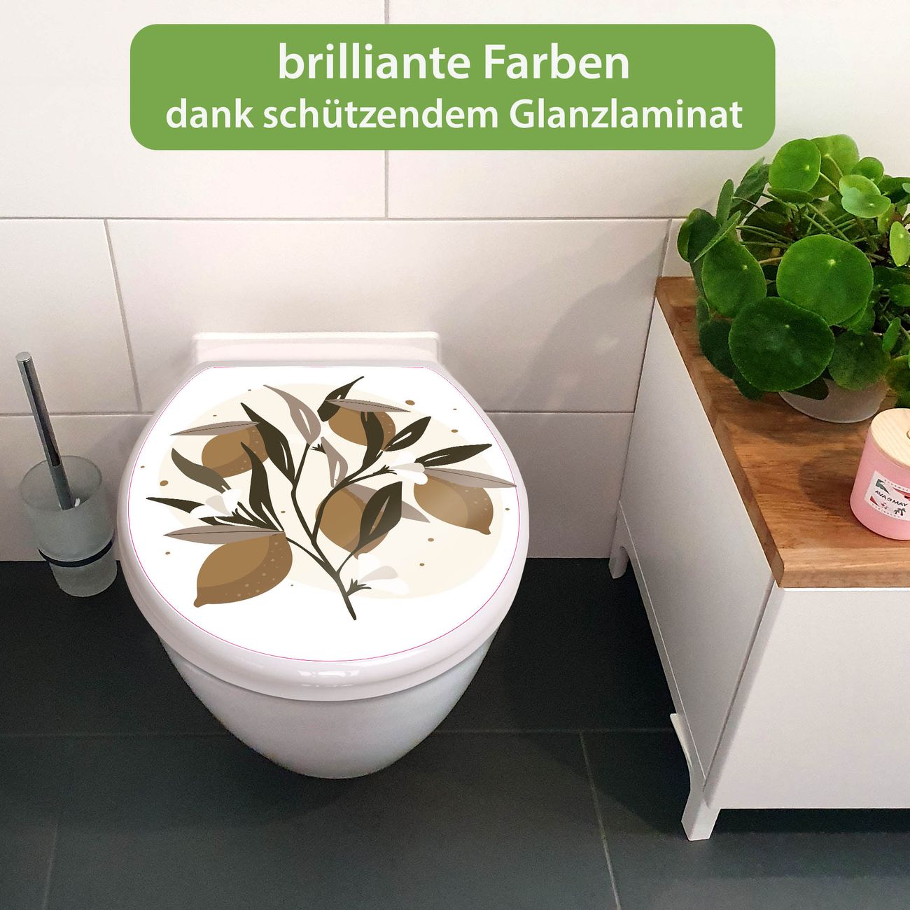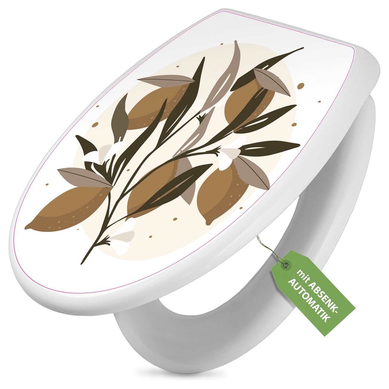 Toilettendeckel weiß mit Absenkautomatik Motiv Zitronenzweig Illustration