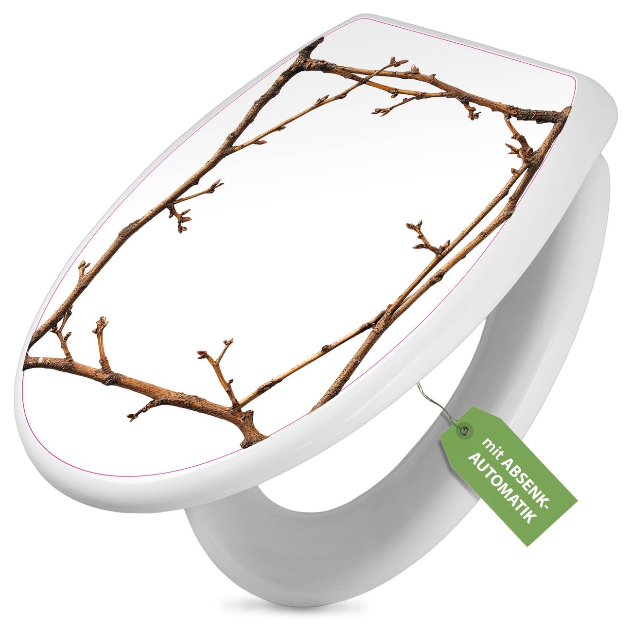 Toilettendeckel weiß mit Absenkautomatik Motiv Zweigrahmen