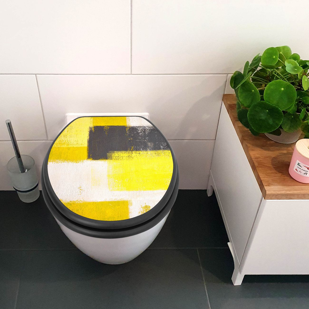 WC Sitz Anthrazit mit Absenkautomatik Motiv Abstrakt Gelb
