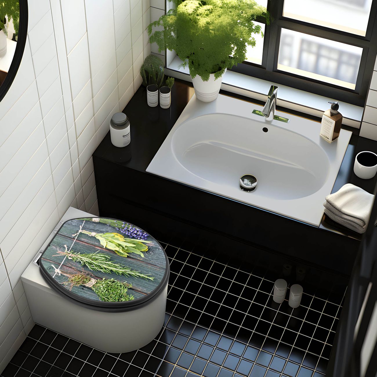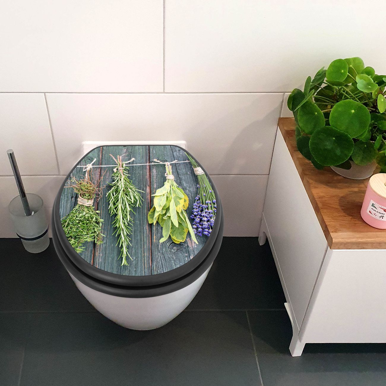WC Sitz Anthrazit mit Absenkautomatik Motiv Acht Kräuter