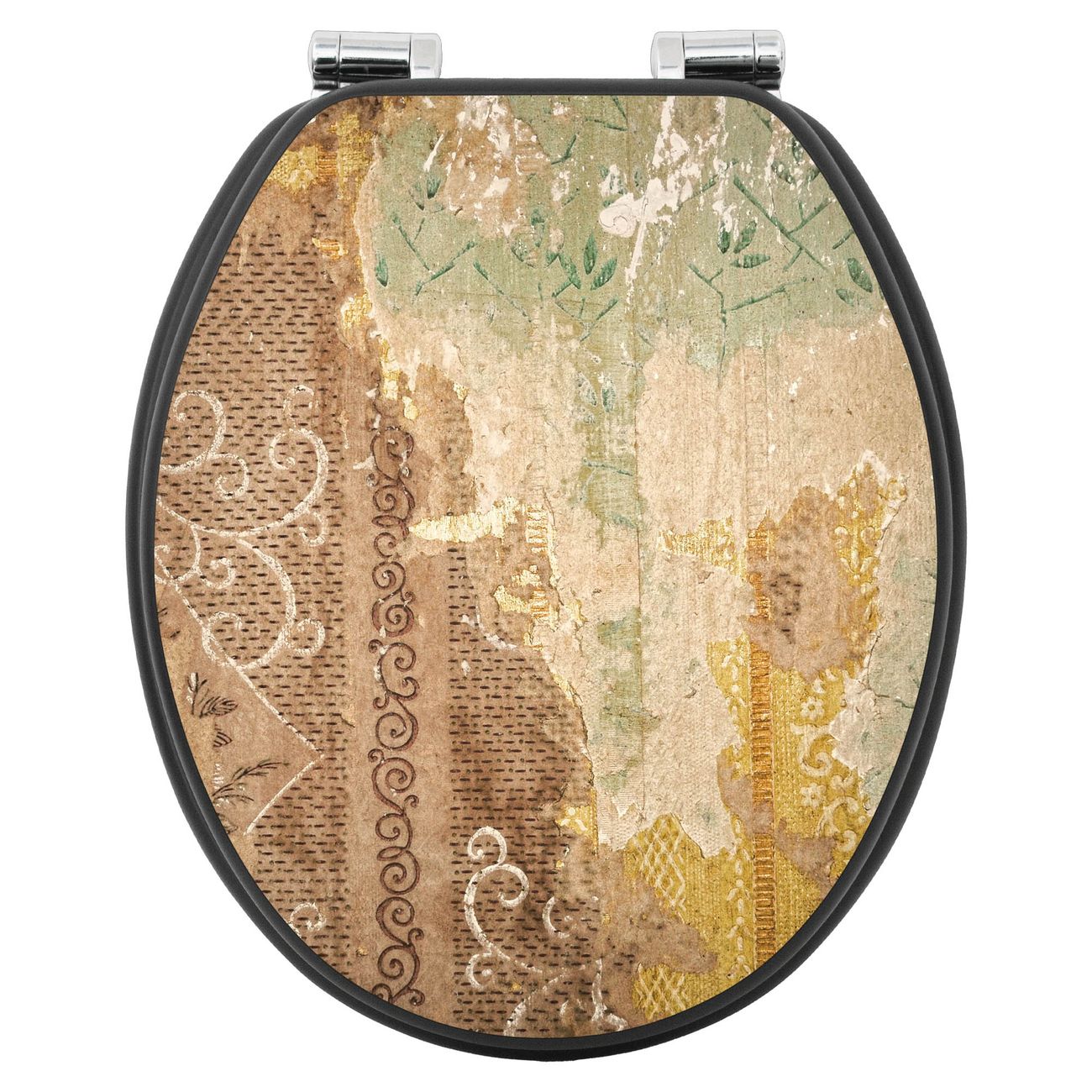 WC Sitz Anthrazit mit Absenkautomatik Motiv Alte Tapeten