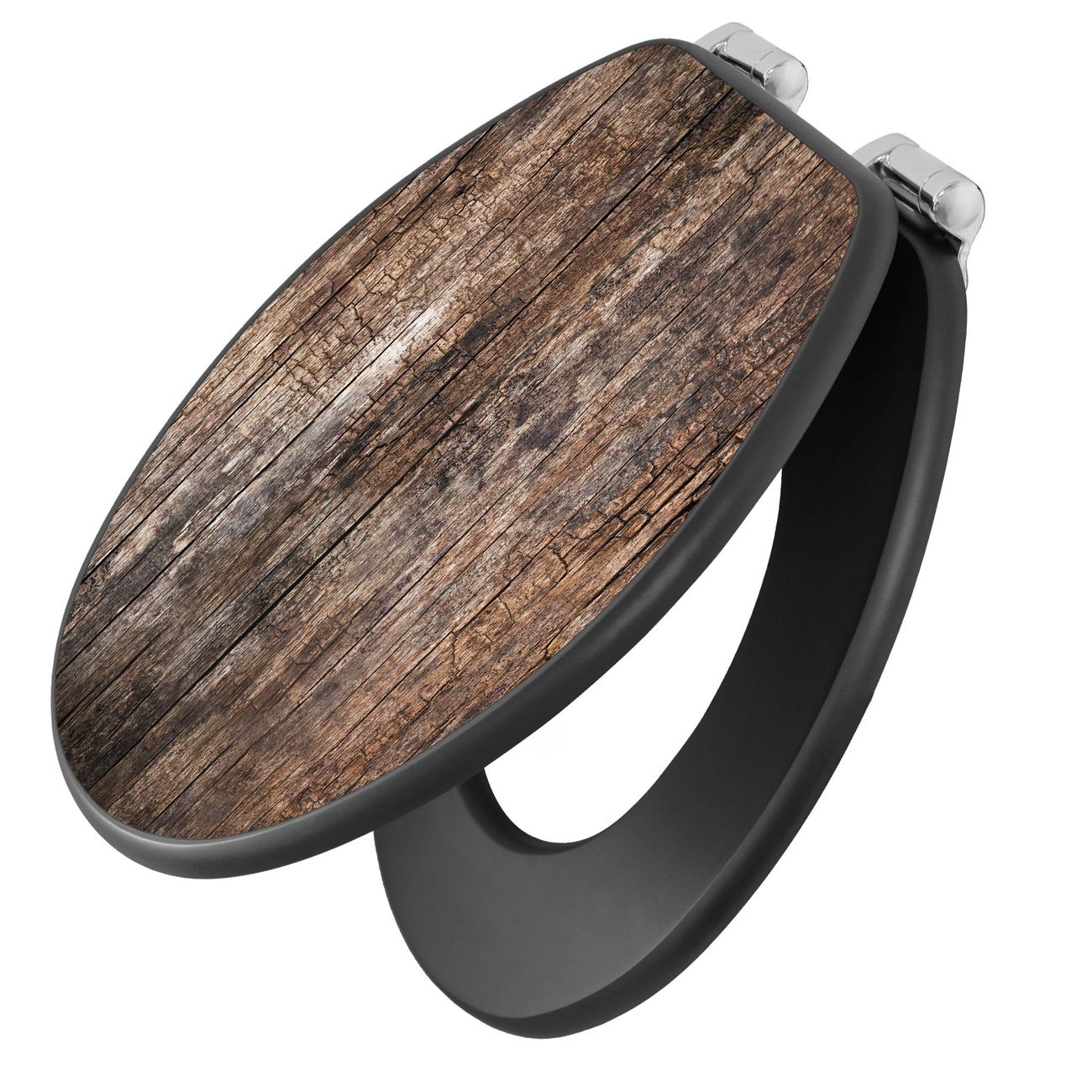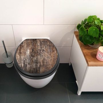 WC Sitz Anthrazit mit Absenkautomatik Motiv Altes Holz