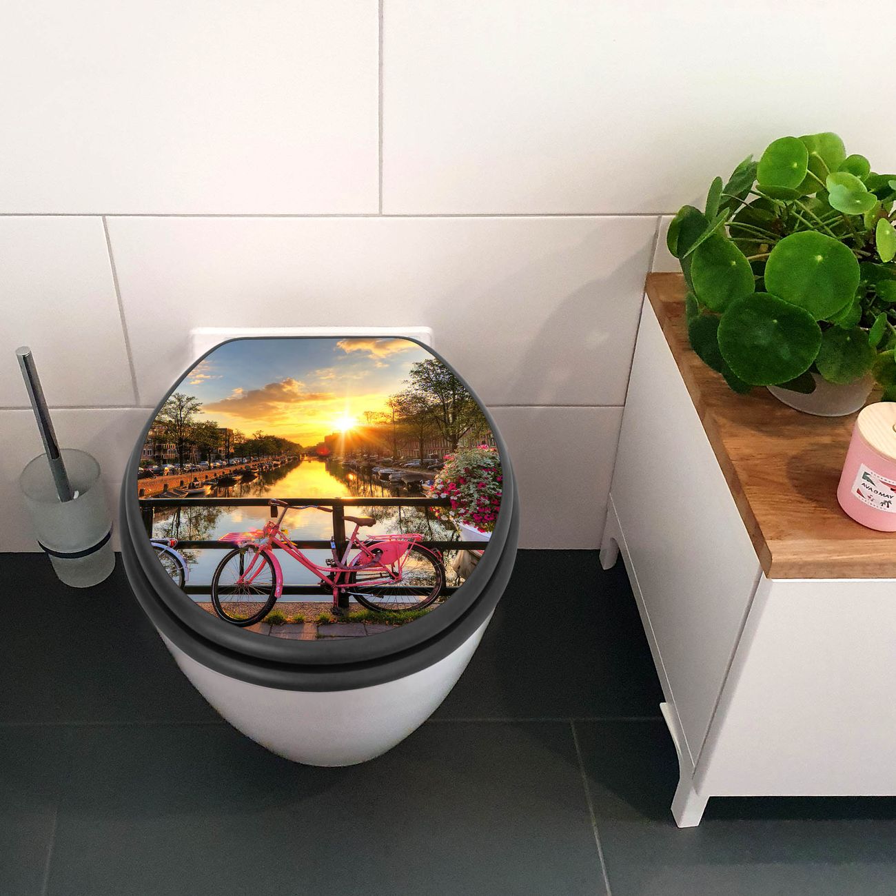 WC Sitz Anthrazit mit Absenkautomatik Motiv Amsterdam Mit Rad