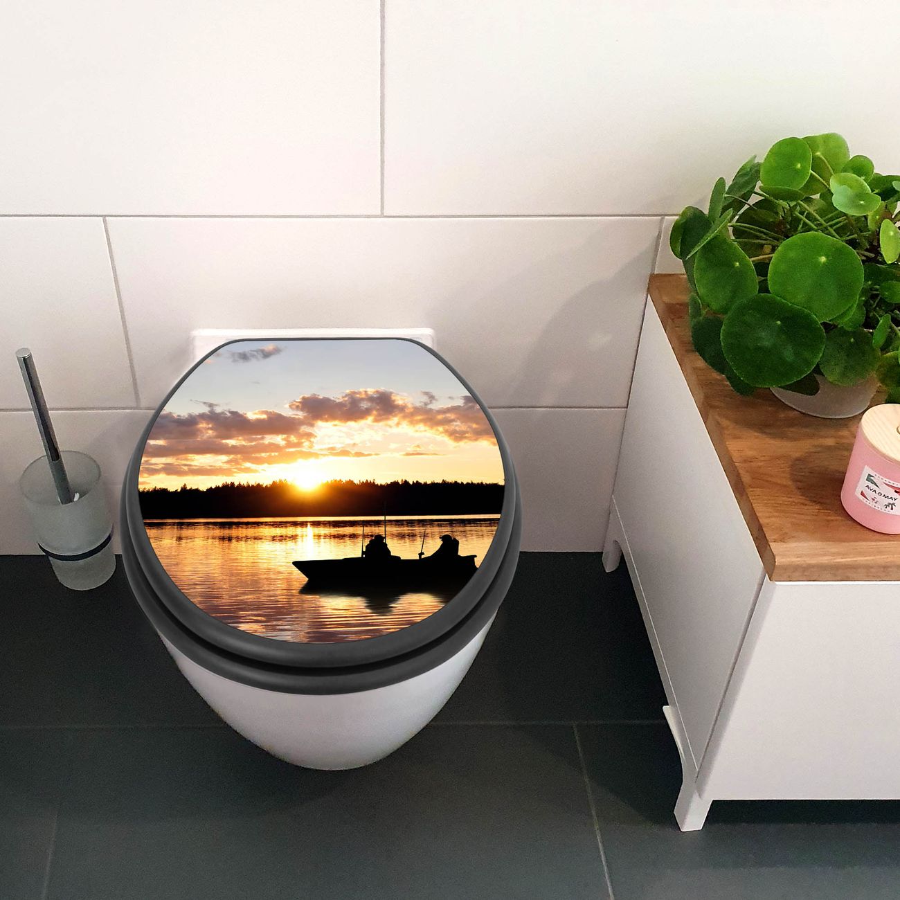 WC Sitz Anthrazit mit Absenkautomatik Motiv Angler