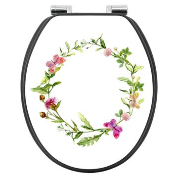 WC Sitz Anthrazit mit Absenkautomatik Motiv Aquarell Blumenring