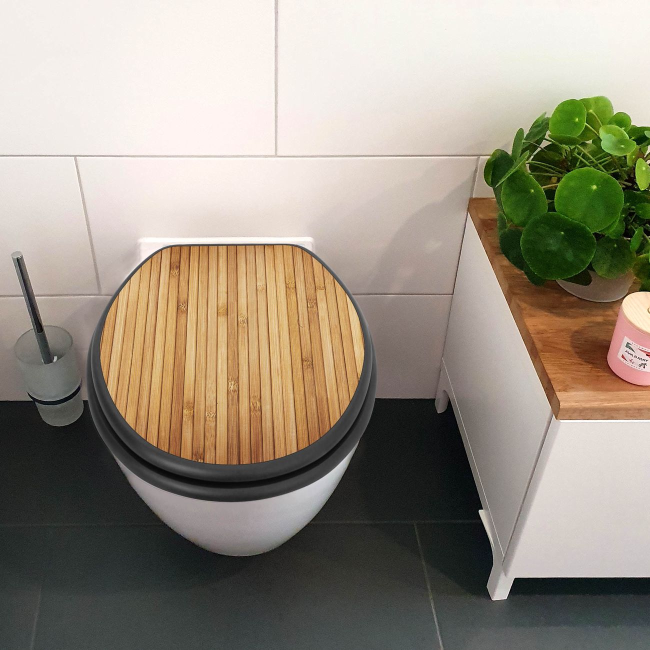 WC Sitz Anthrazit mit Absenkautomatik Motiv Bambusholz