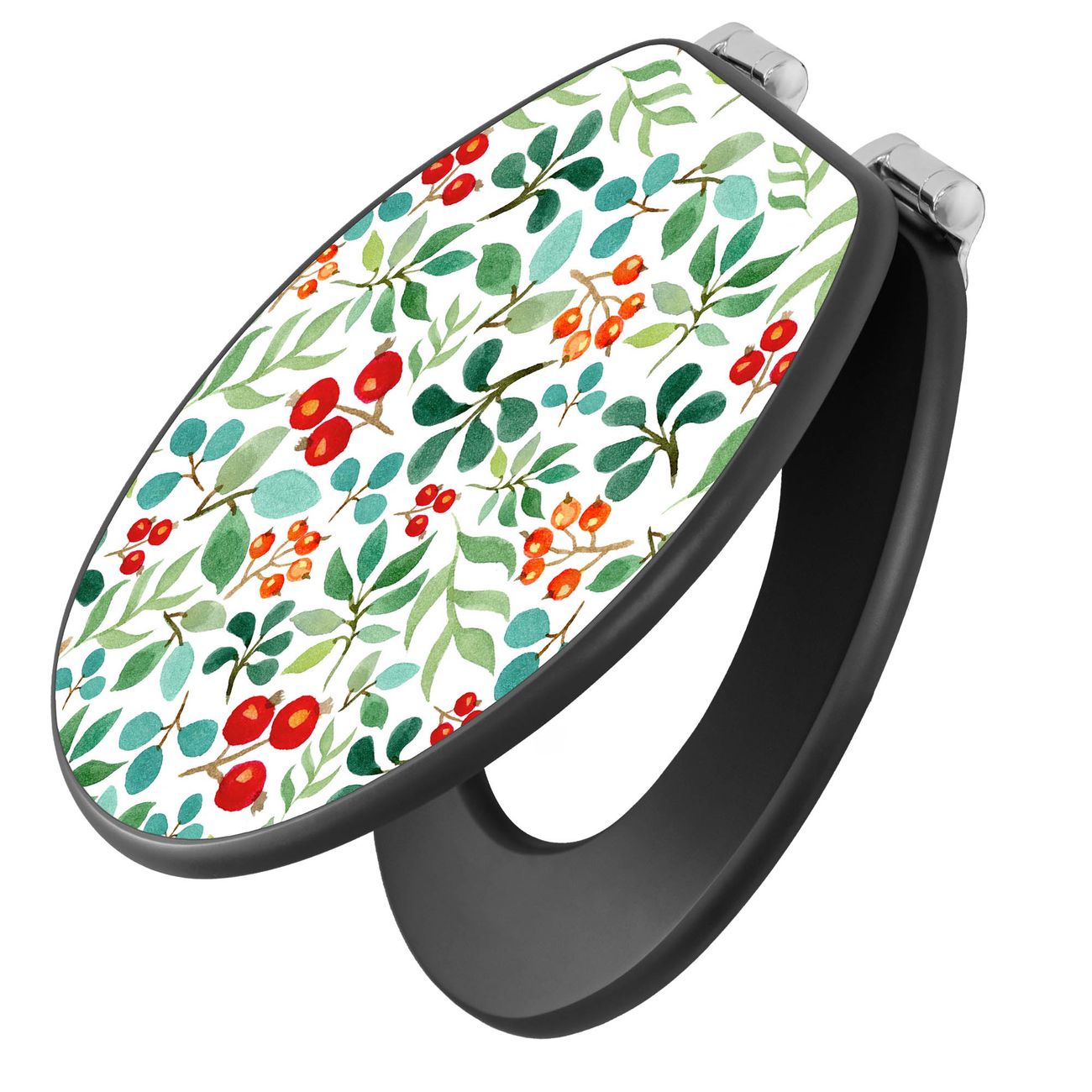 WC Sitz Anthrazit mit Absenkautomatik Motiv Beeren und Blätter
