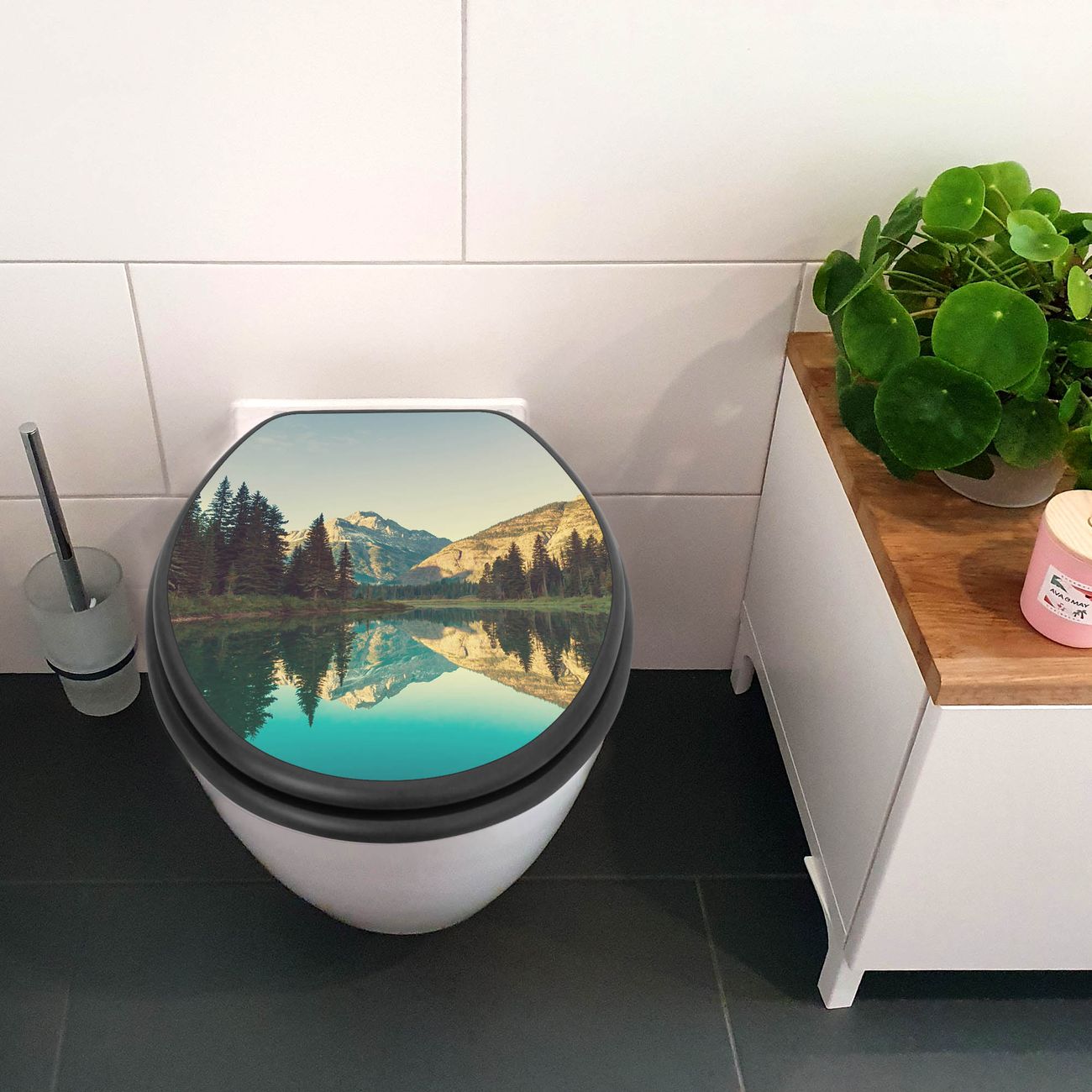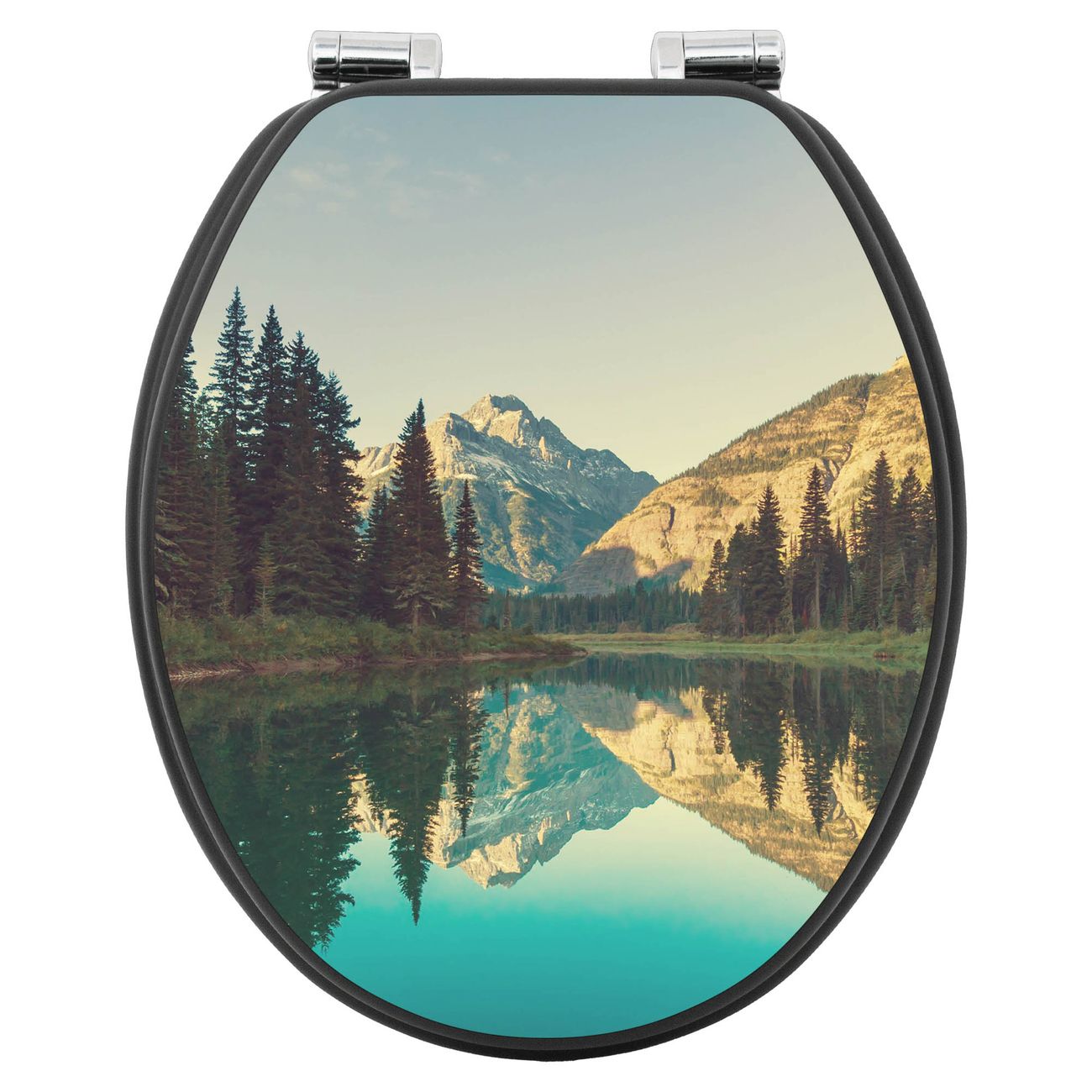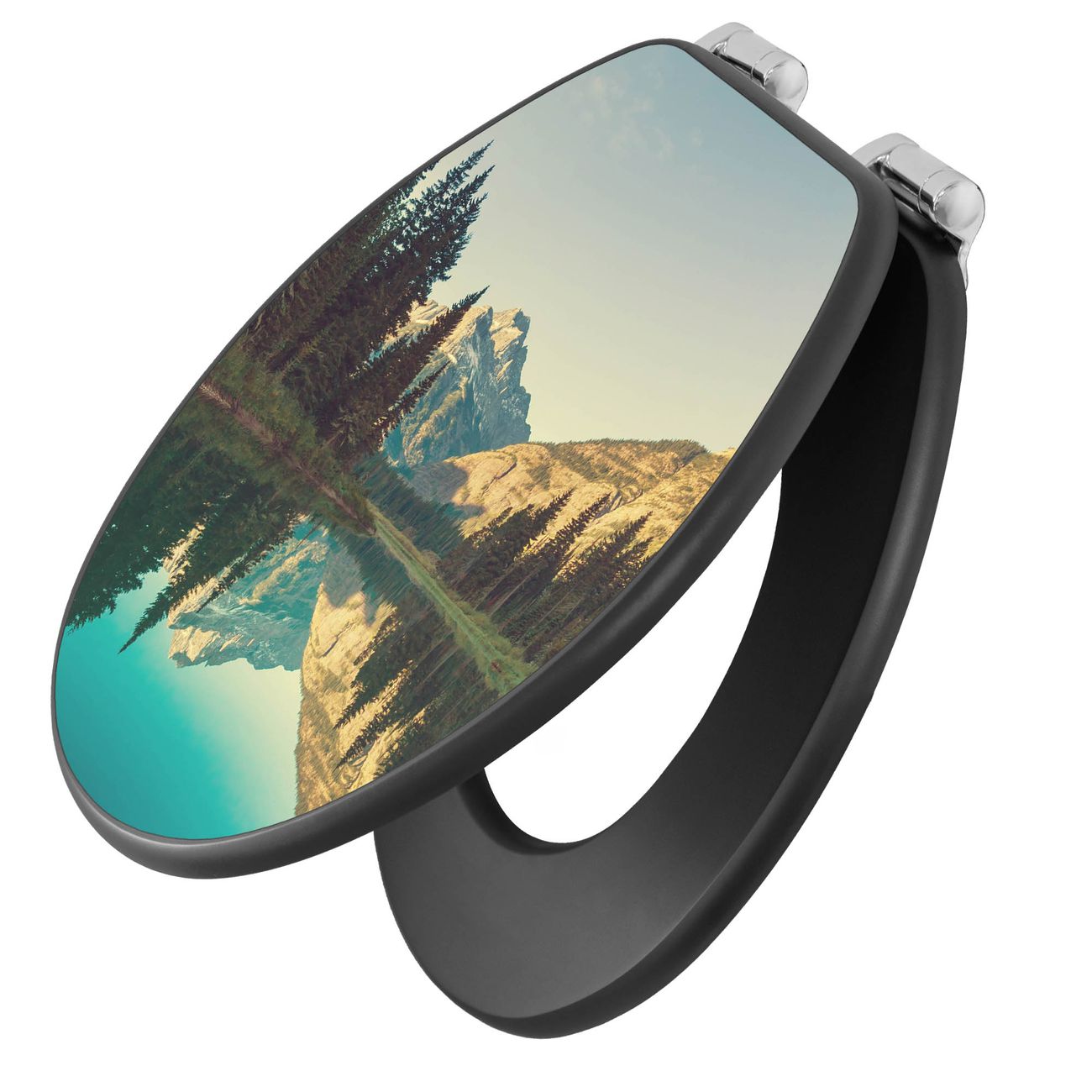 WC Sitz Anthrazit mit Absenkautomatik Motiv Bergsee