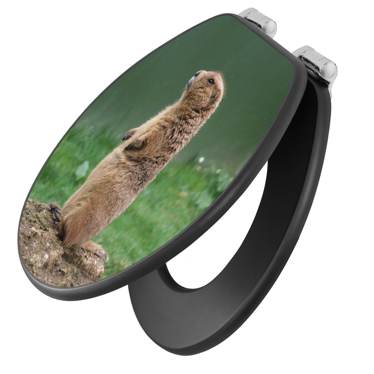 WC Sitz Anthrazit mit Absenkautomatik Motiv Biber