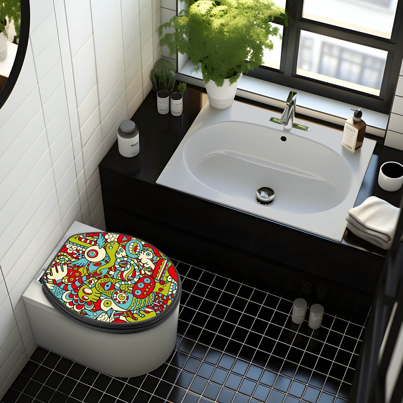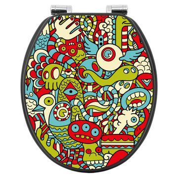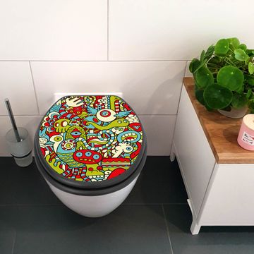 WC Sitz Anthrazit mit Absenkautomatik Motiv Birds Worms Freaks