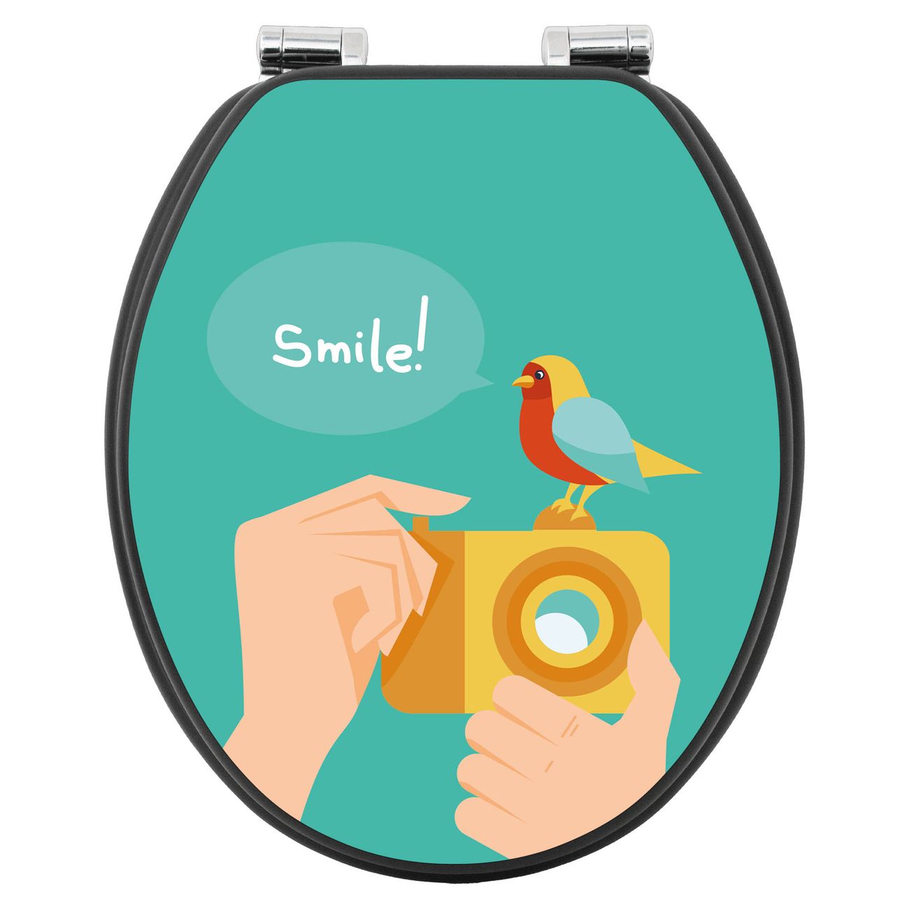 WC Sitz Anthrazit mit Absenkautomatik Motiv Bitte Lächeln 2