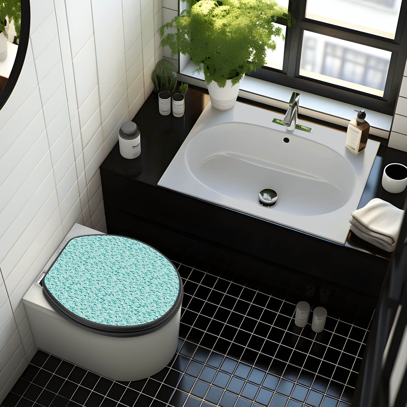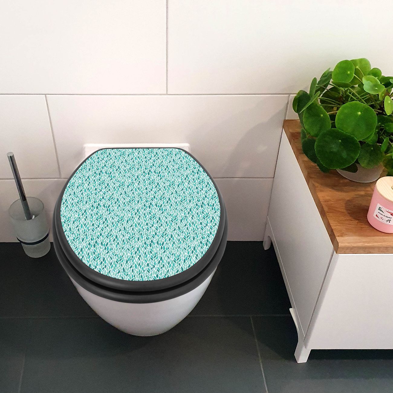 WC Sitz Anthrazit mit Absenkautomatik Motiv Blätter Mint