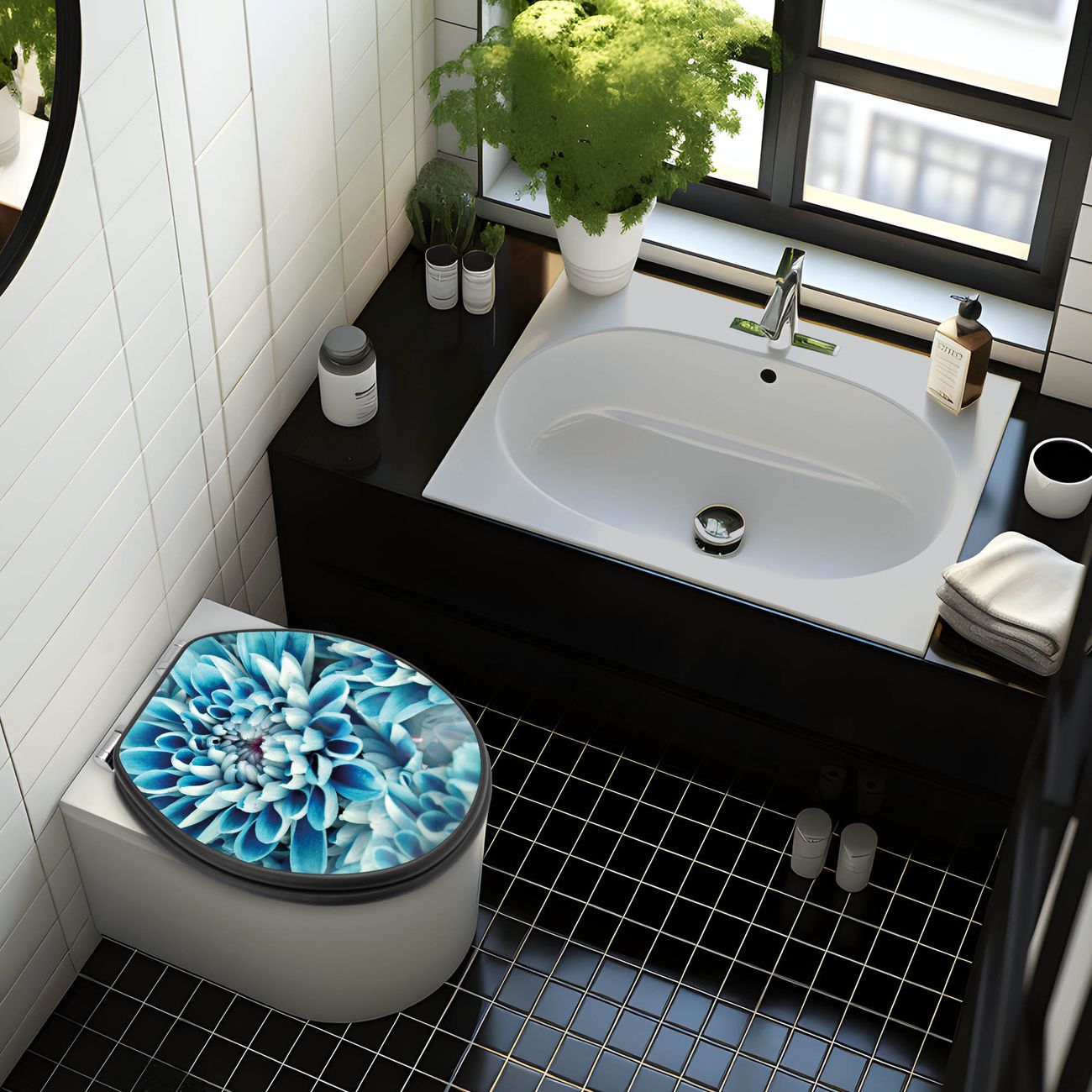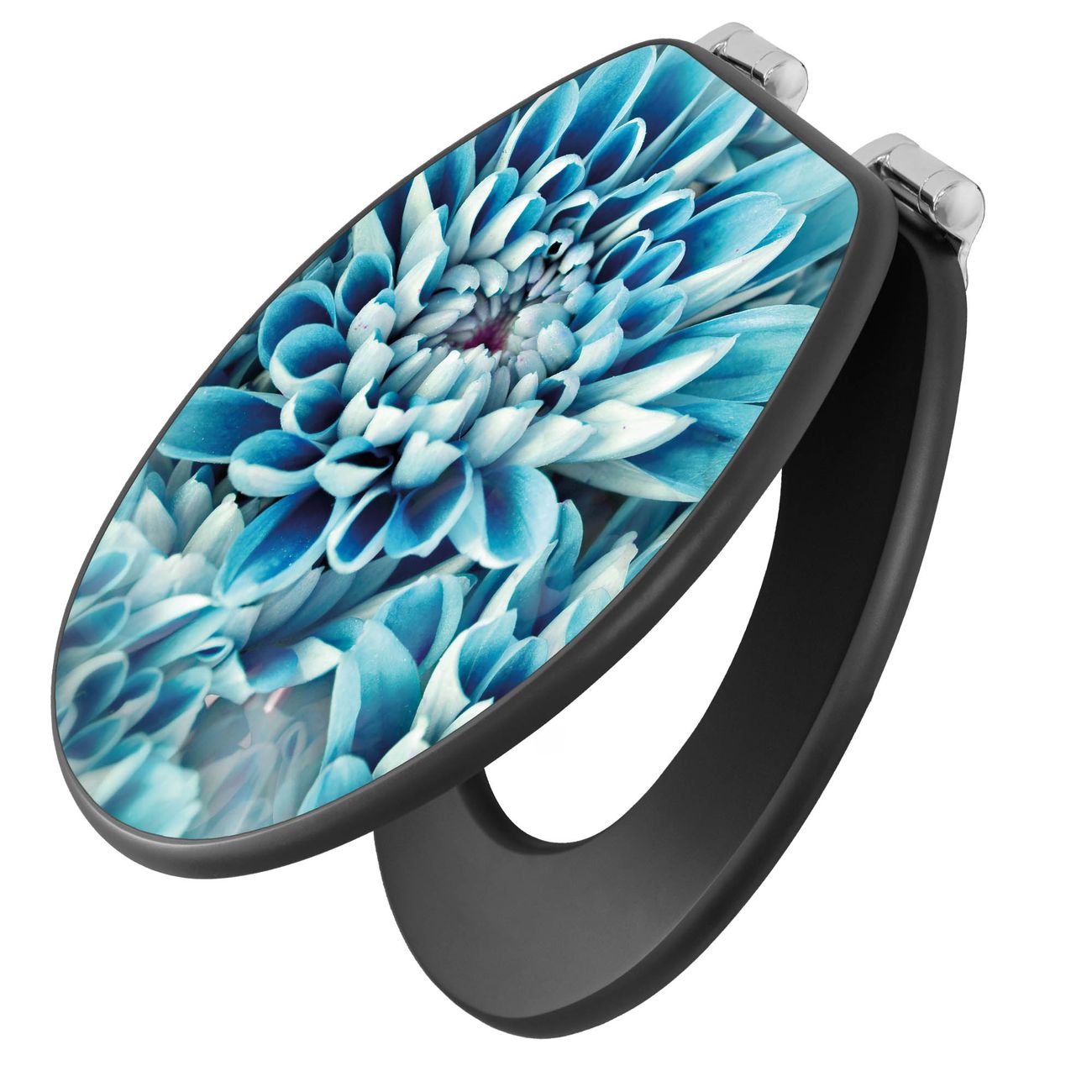WC Sitz Anthrazit mit Absenkautomatik Motiv Blaue Blüten