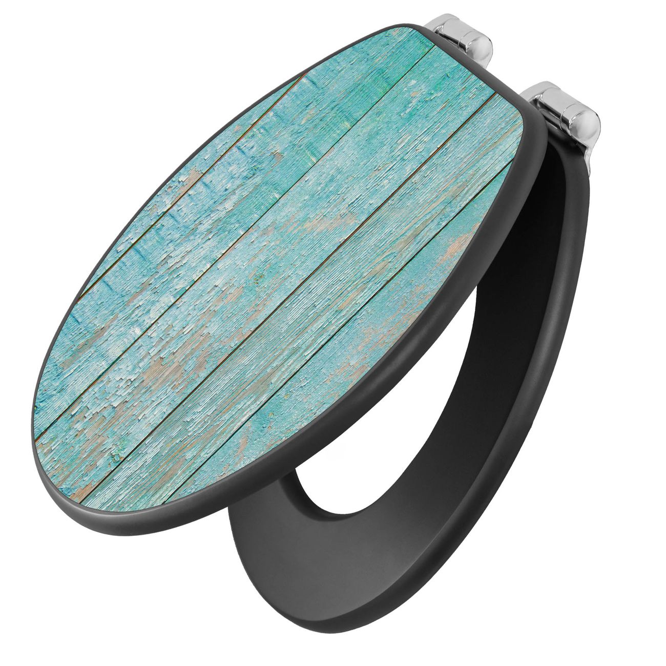 WC Sitz Anthrazit mit Absenkautomatik Motiv Blaue Planken