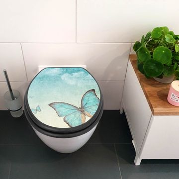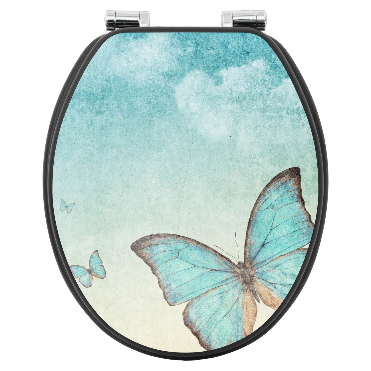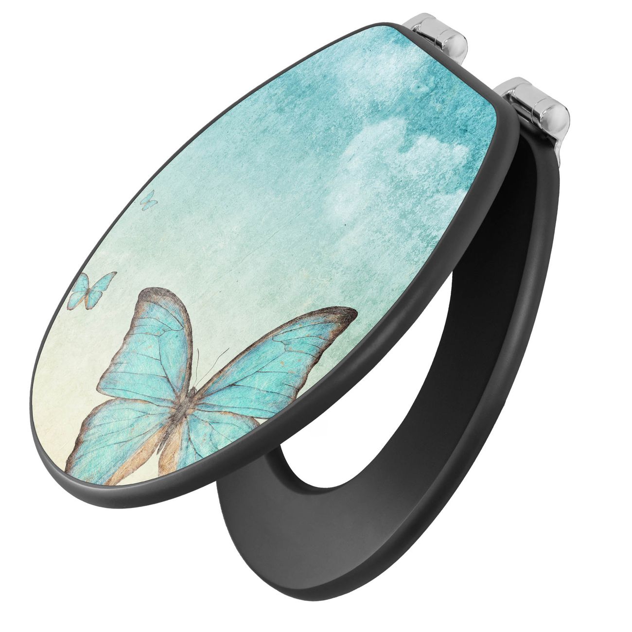 WC Sitz Anthrazit mit Absenkautomatik Motiv Blaue Schmetterlinge
