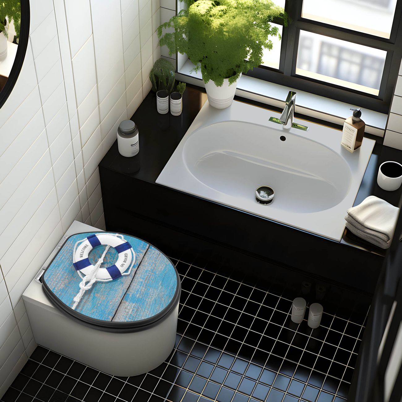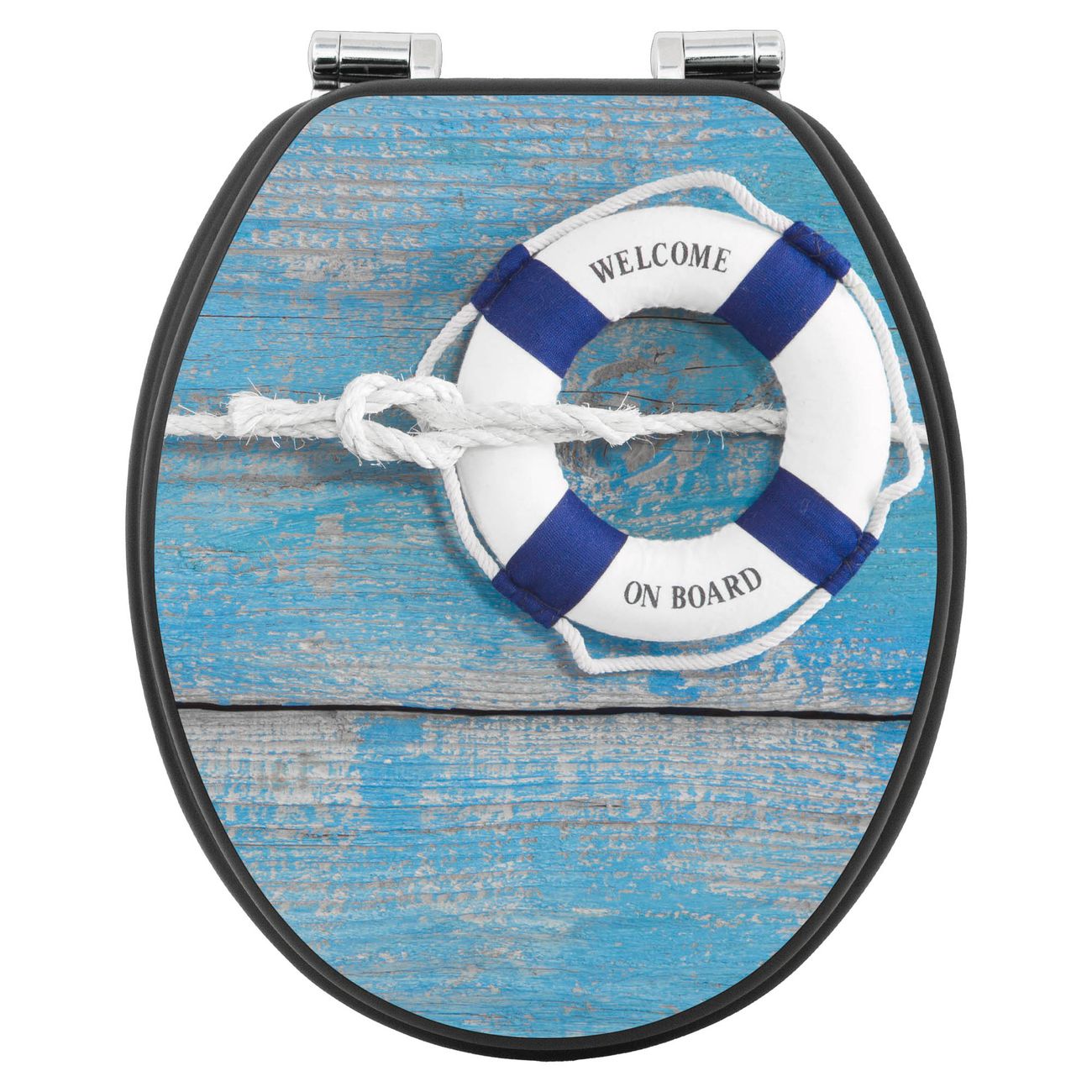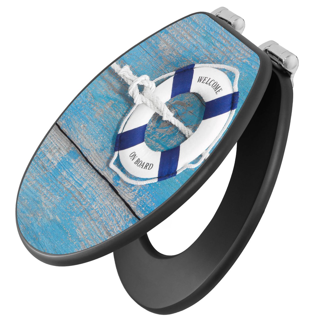 WC Sitz Anthrazit mit Absenkautomatik Motiv Blauer Rettungsring