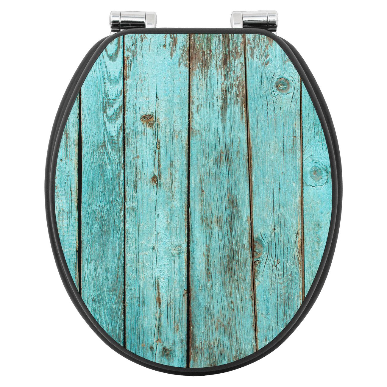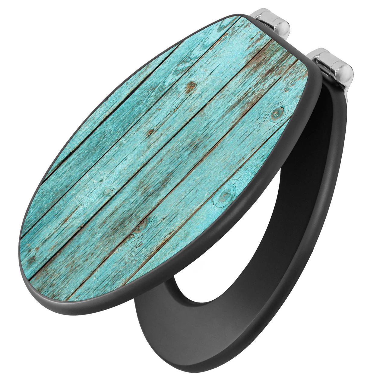 WC Sitz Anthrazit mit Absenkautomatik Motiv Blaues Holz