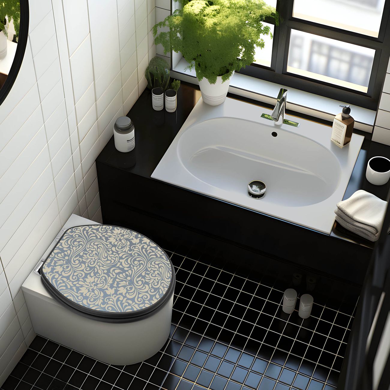 WC Sitz Anthrazit mit Absenkautomatik Motiv Blaues Ornament