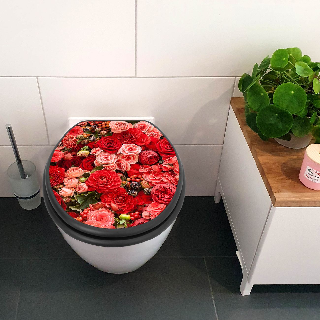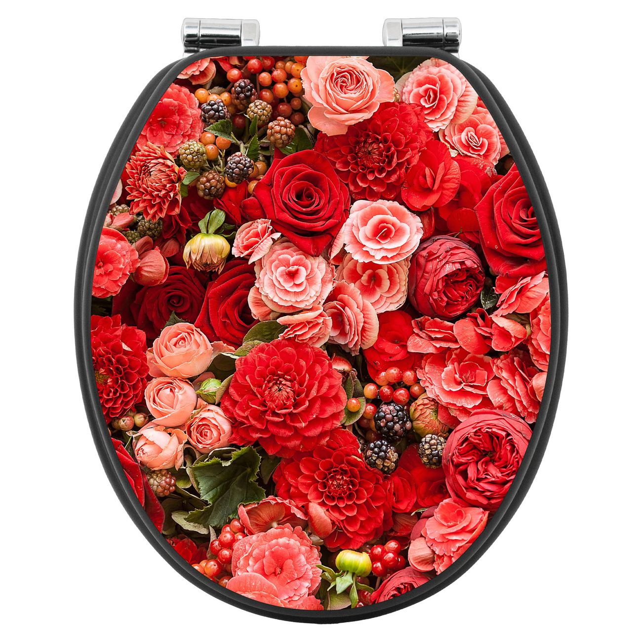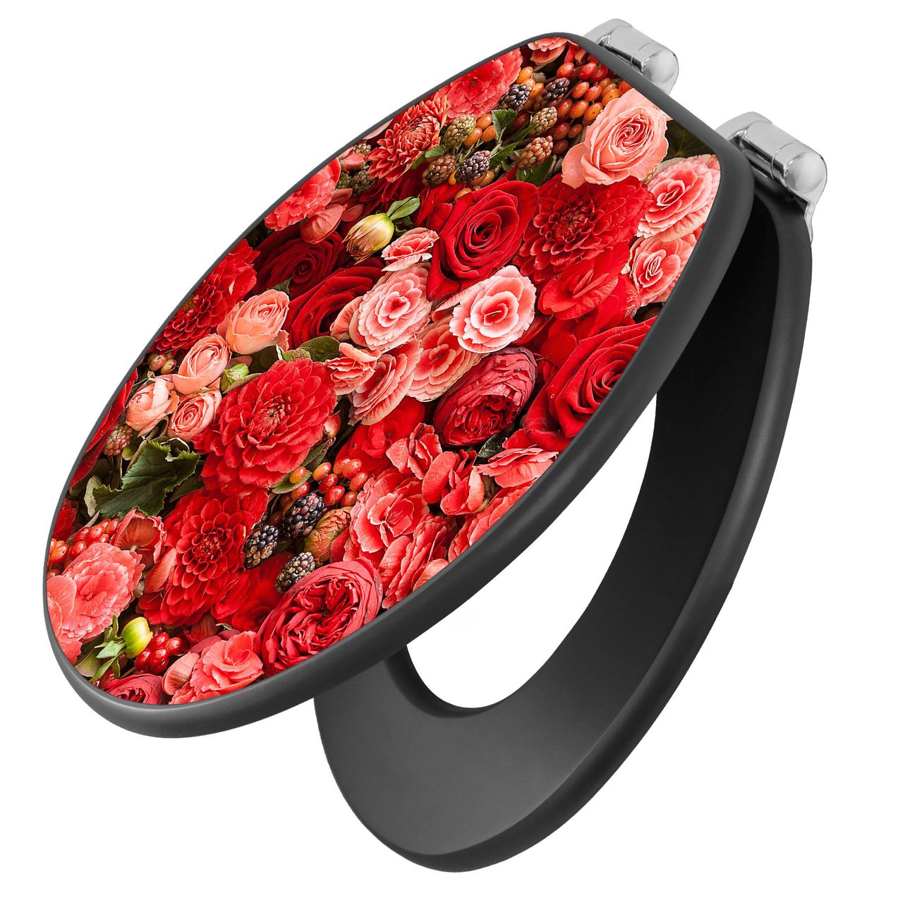 WC Sitz Anthrazit mit Absenkautomatik Motiv Bouquet in Rot